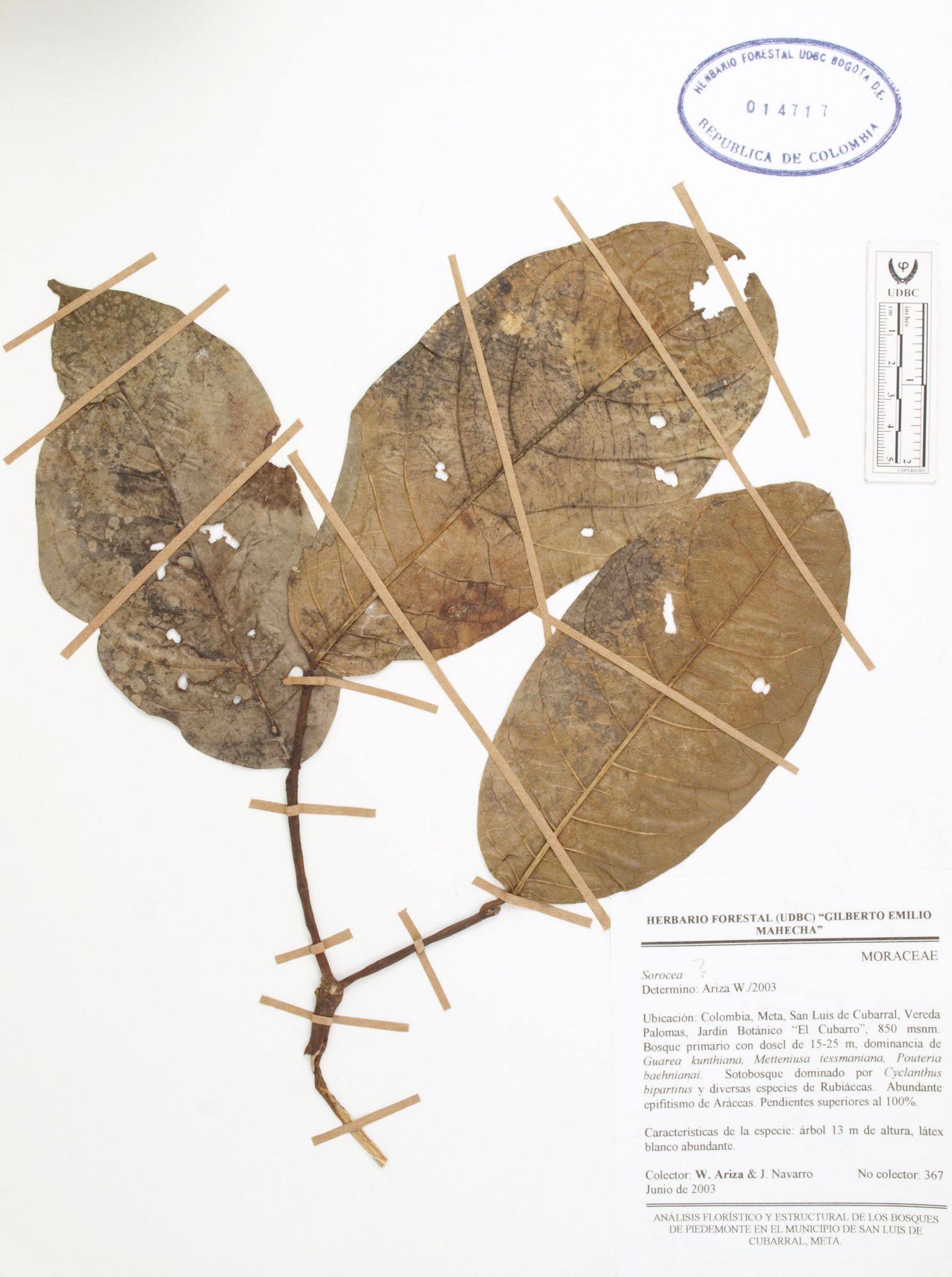 Fotografía del ejemplar Ariza, W. 367, determinado como Sorocea sp. en el año 2003