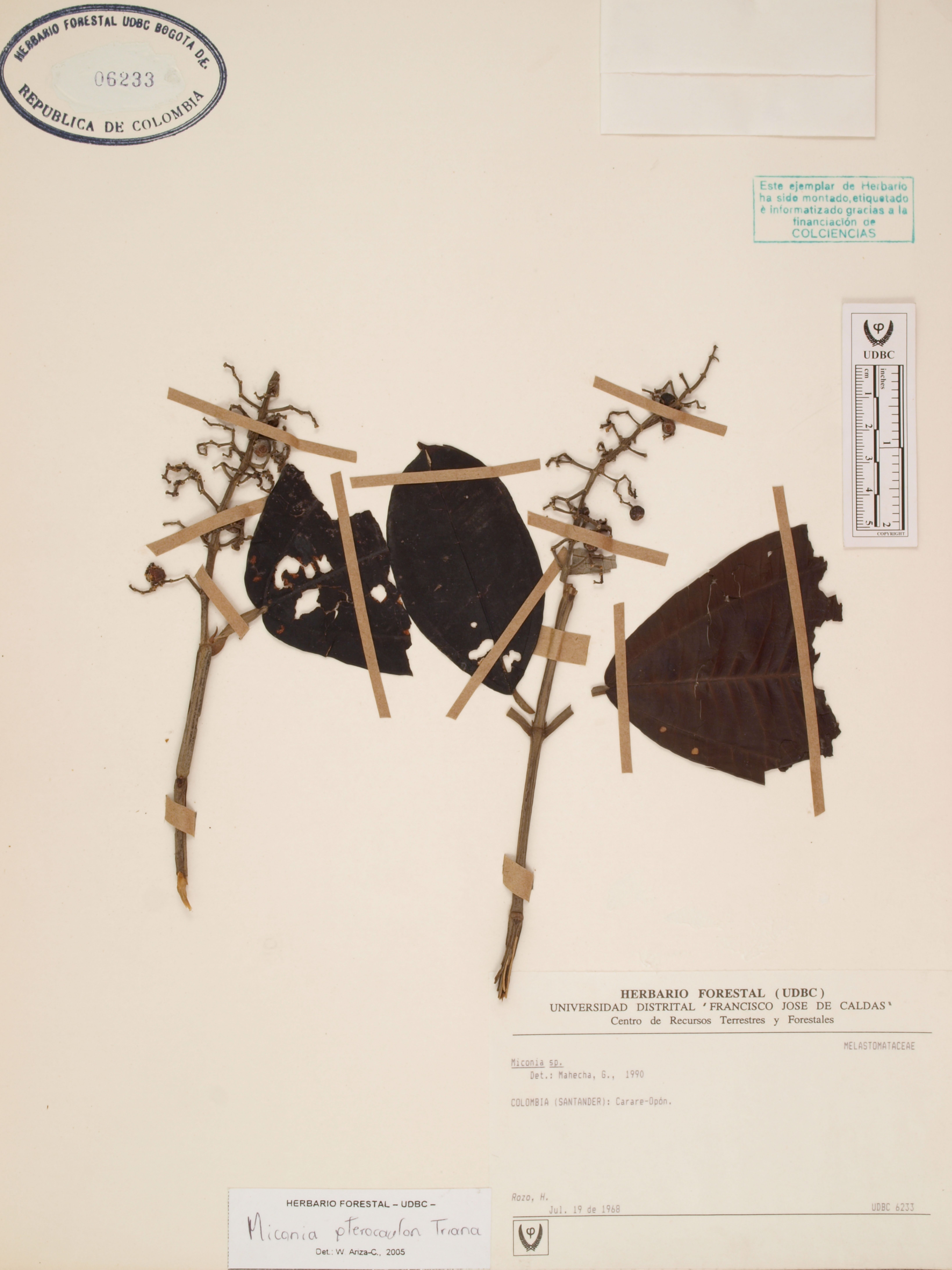 Fotografía del ejemplar Rozo, H., determinado como Miconia pterocaulon en el año 2005