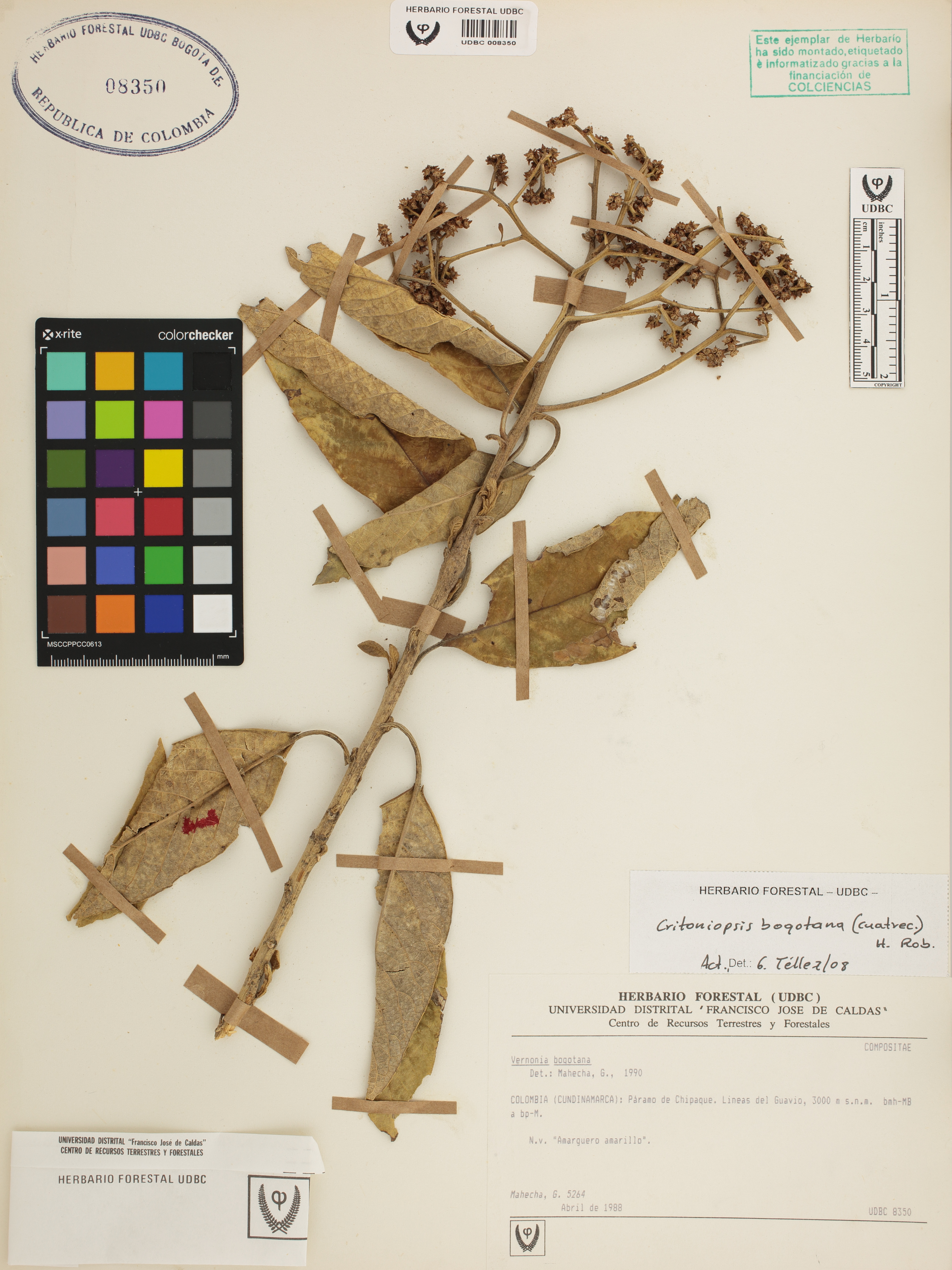 Fotografía del ejemplar Mahecha, G. 5264, determinado como Critoniopsis bogotana en el año 2008