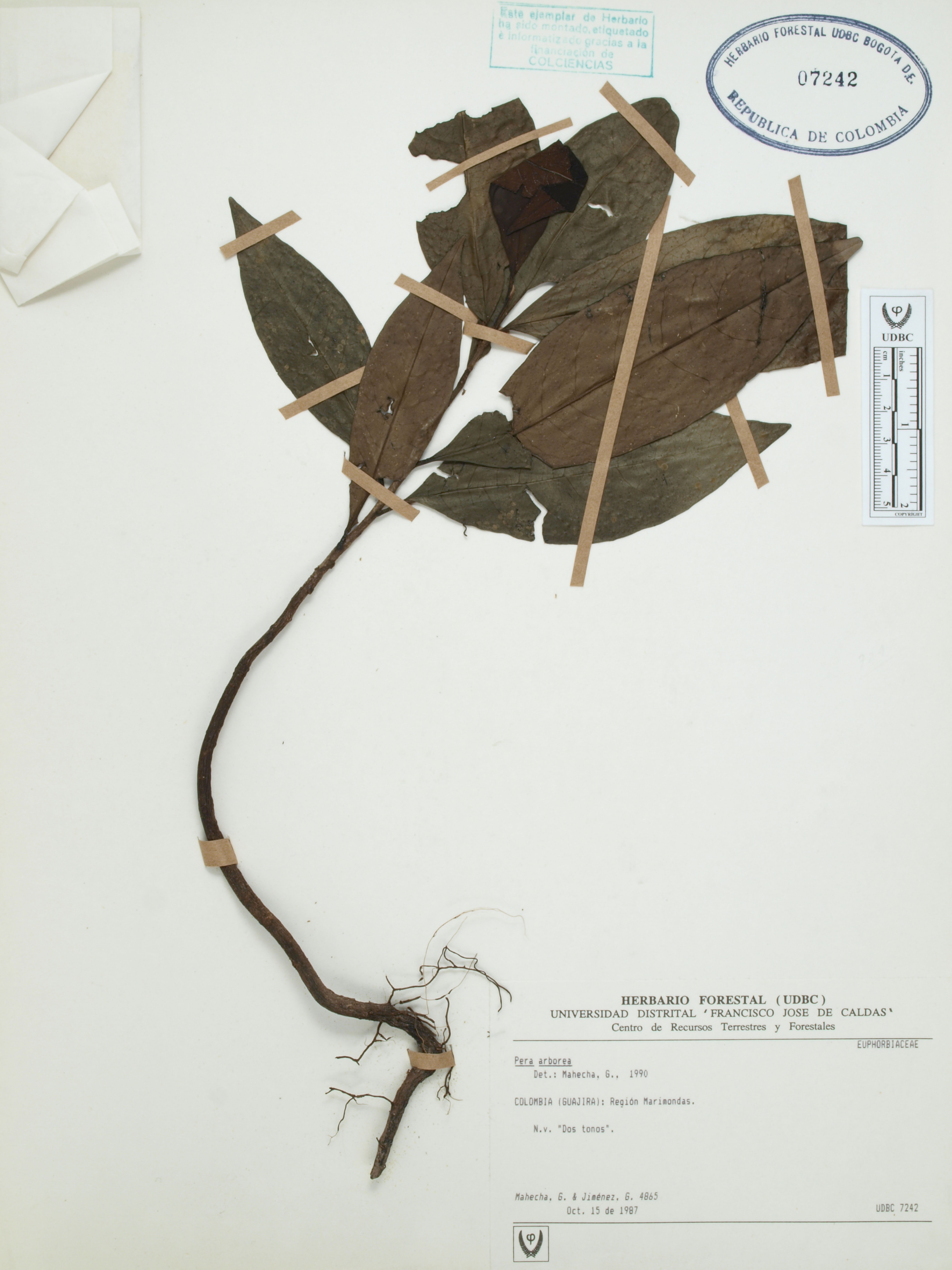 Fotografía del ejemplar Mahecha, G. 4865, determinado como Pera arborea
