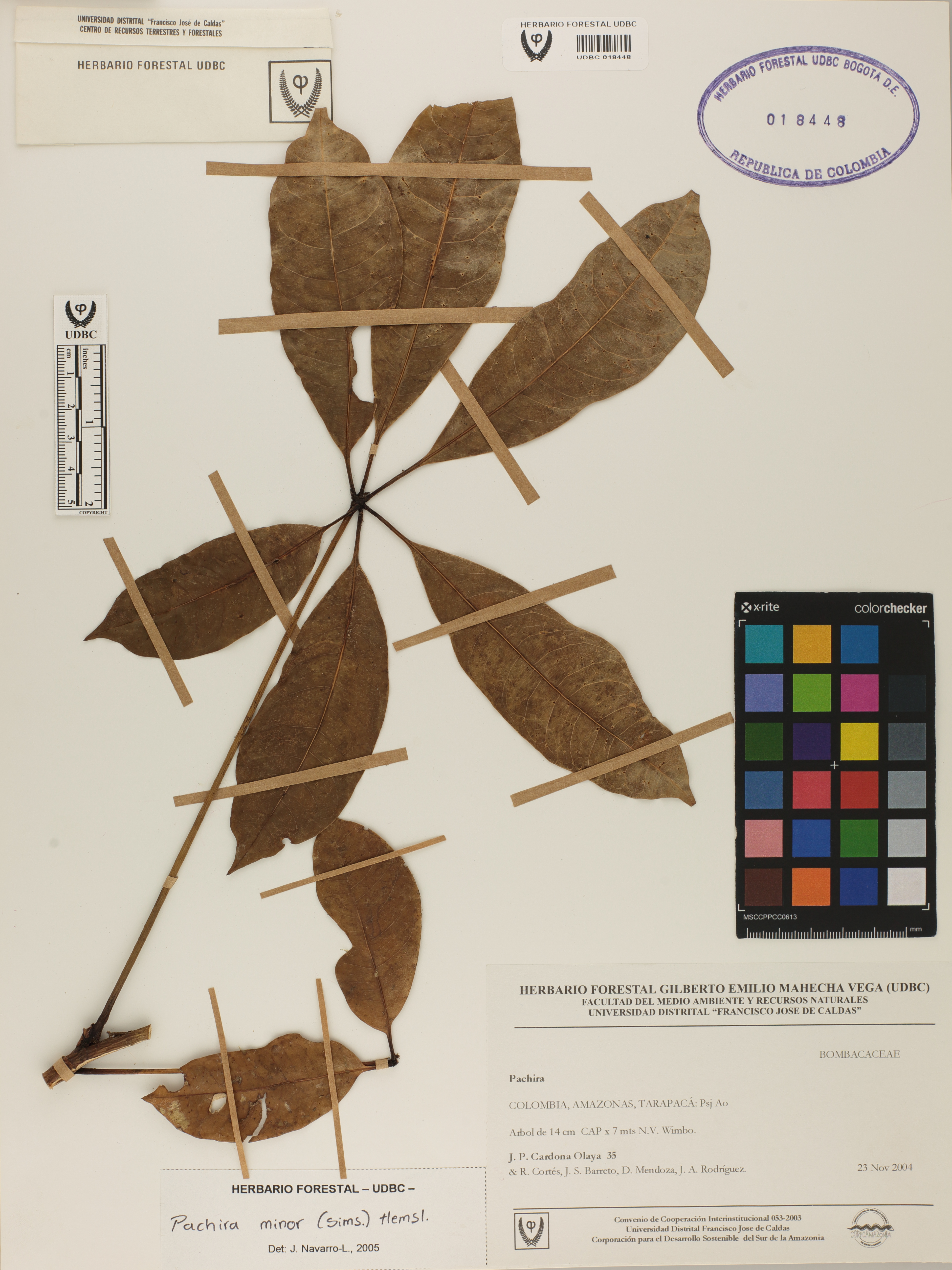 Fotografía del ejemplar Cardona, J. 35, determinado como Pachira minor en el año 2005