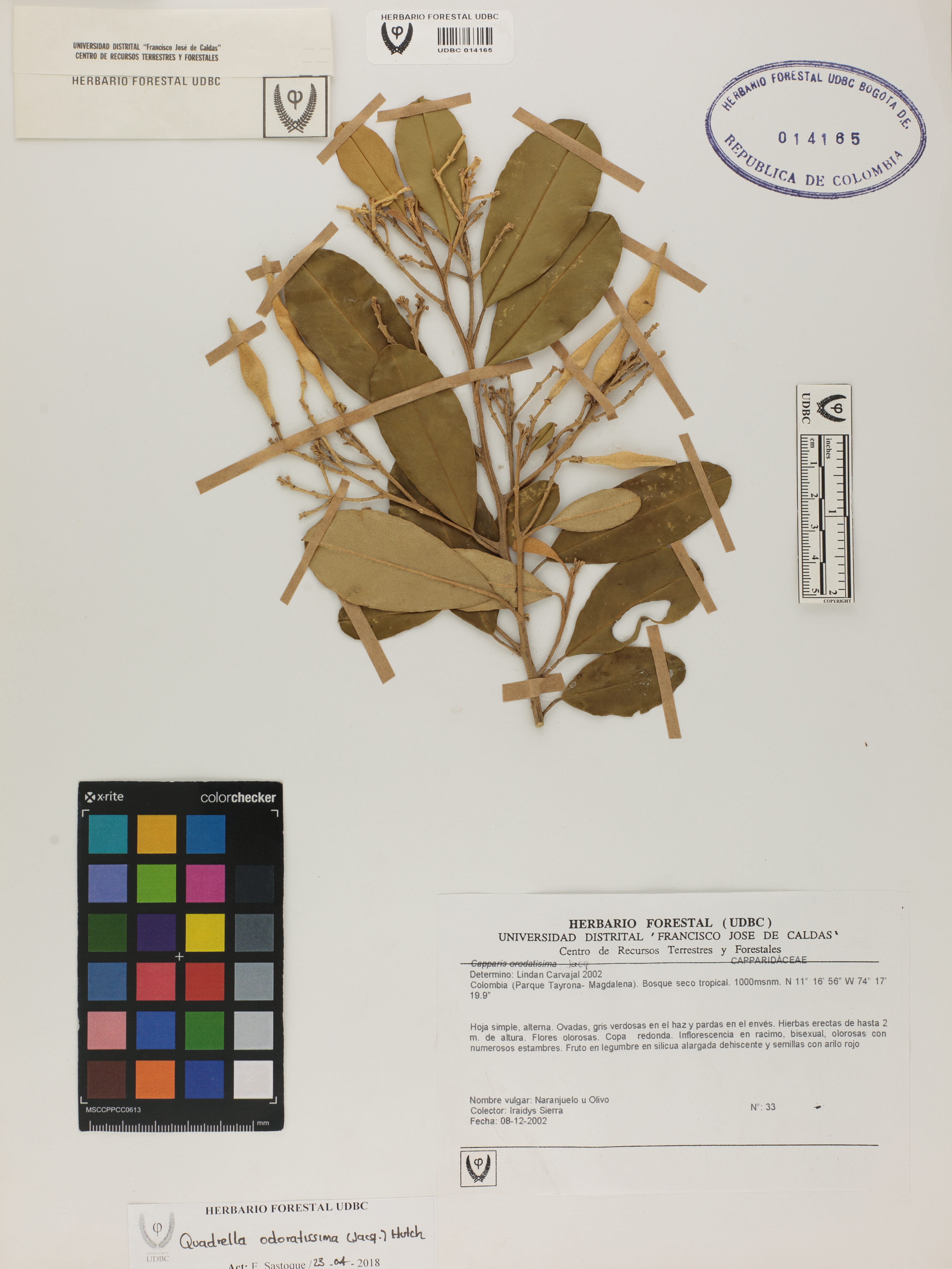 Fotografía del ejemplar Sierra, I. 33, determinado como Quadrella odoratissima en el año 2002