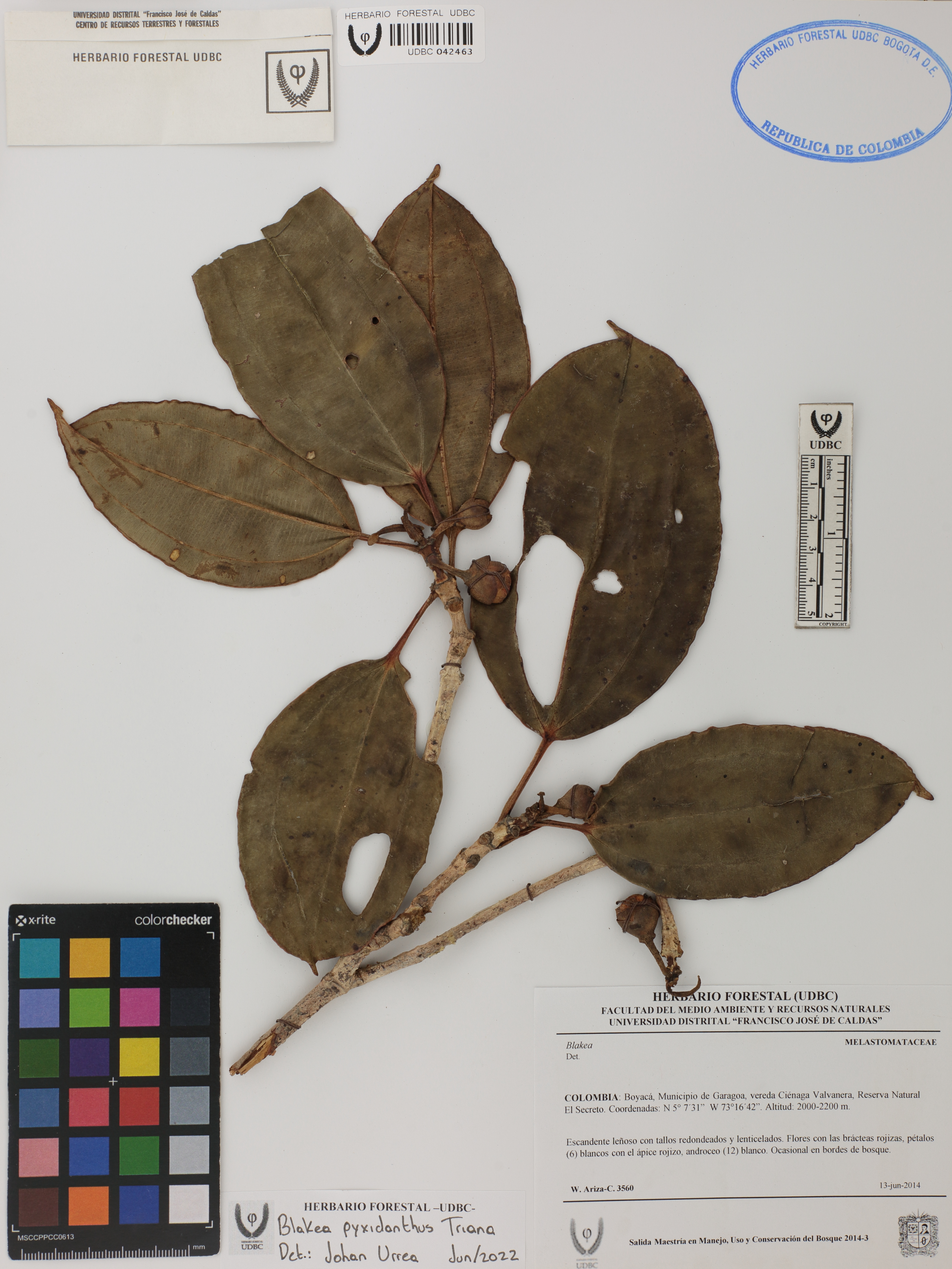 | dc.description | Fotografía del ejemplar Ariza-C., W. 3560, determinado como Blakea pyxidanthus en el año 2022 | |
