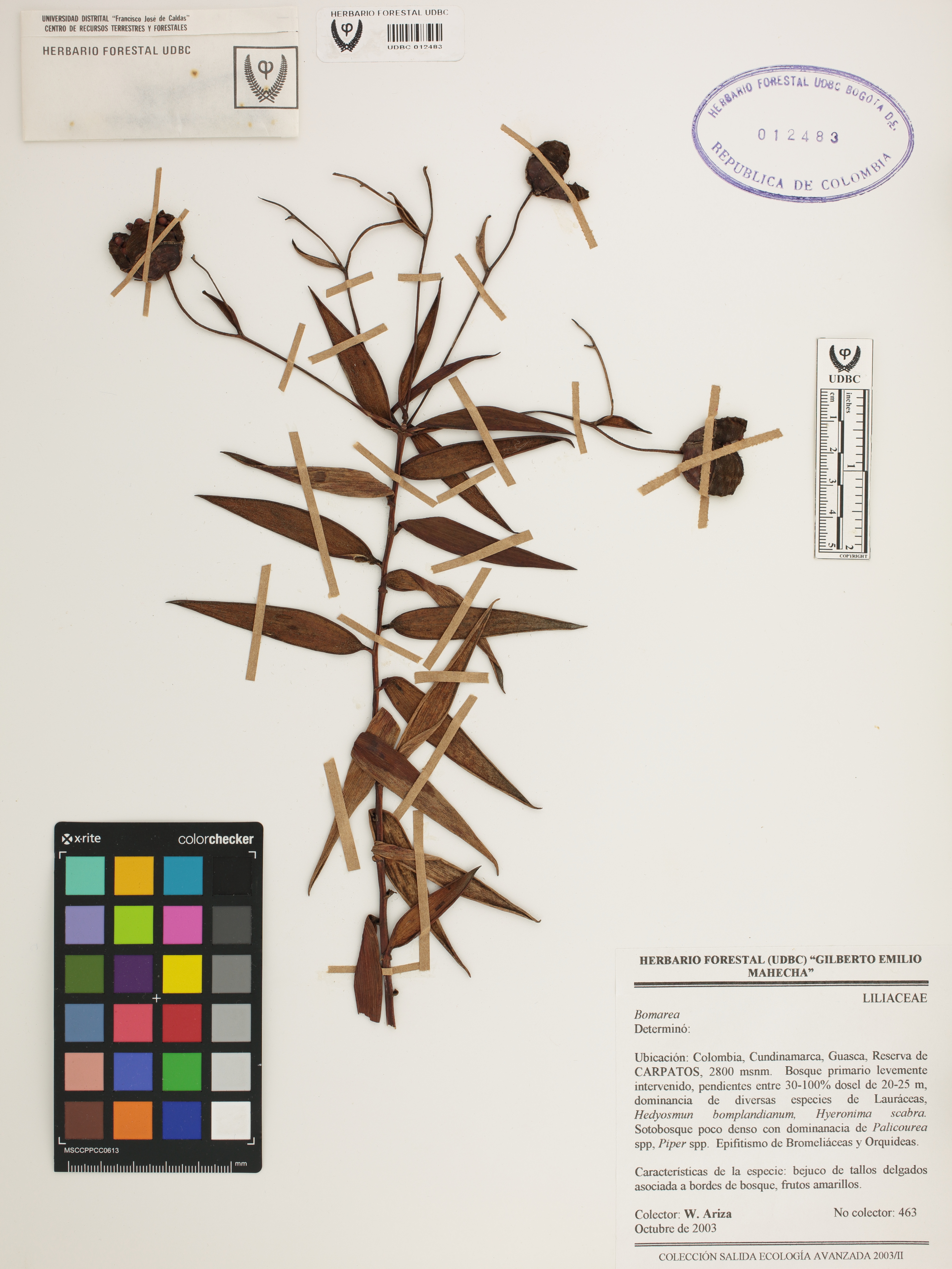 | dc.description | Fotografía del ejemplar Ariza, W. 463, determinado como Bomarea angustifolia en el año 2024 | |