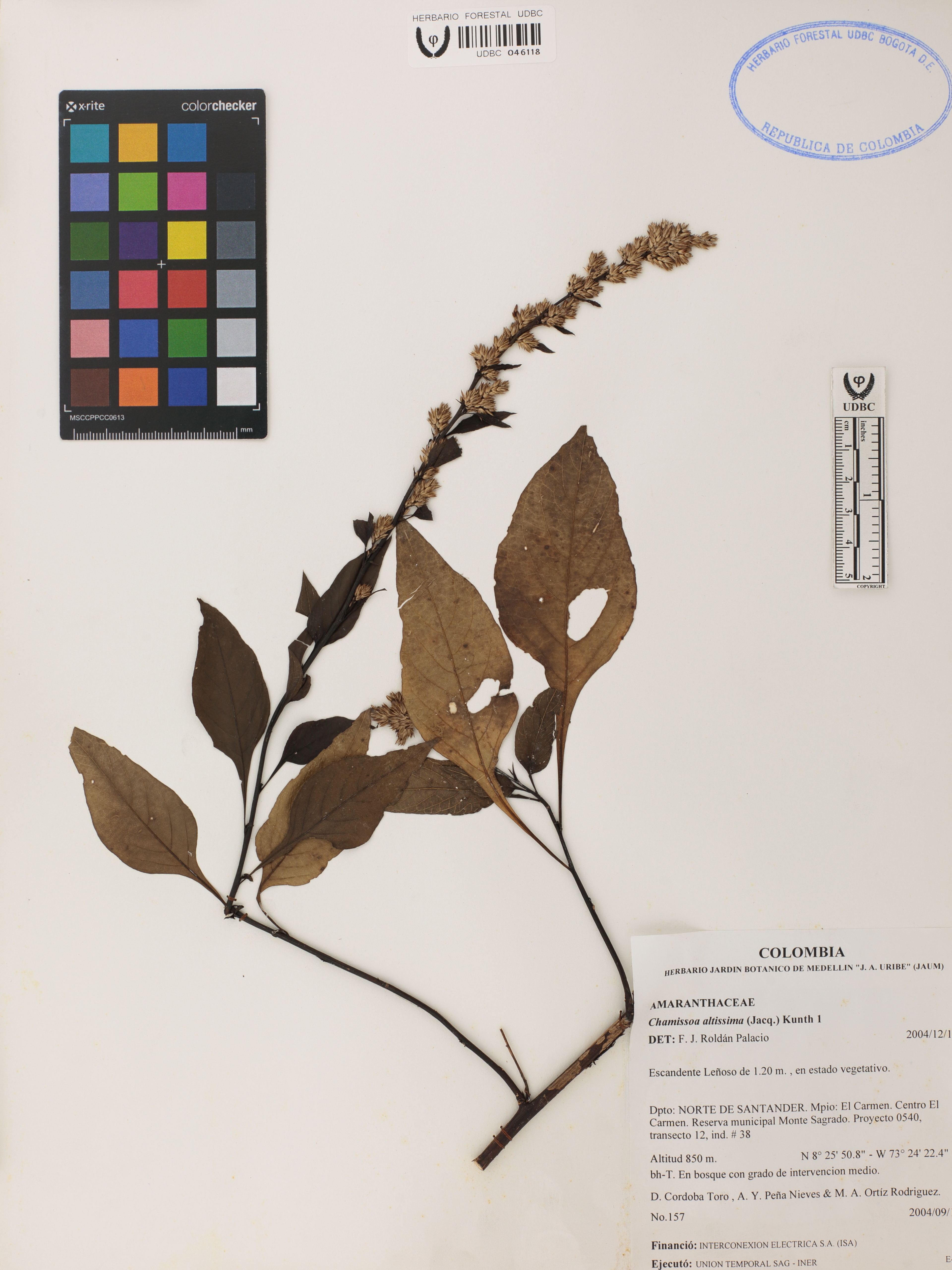 | dc.description | Fotografía del ejemplar Córdoba-Toro, A. 157, determinado como Chamissoa altissima en el año 2004 | |