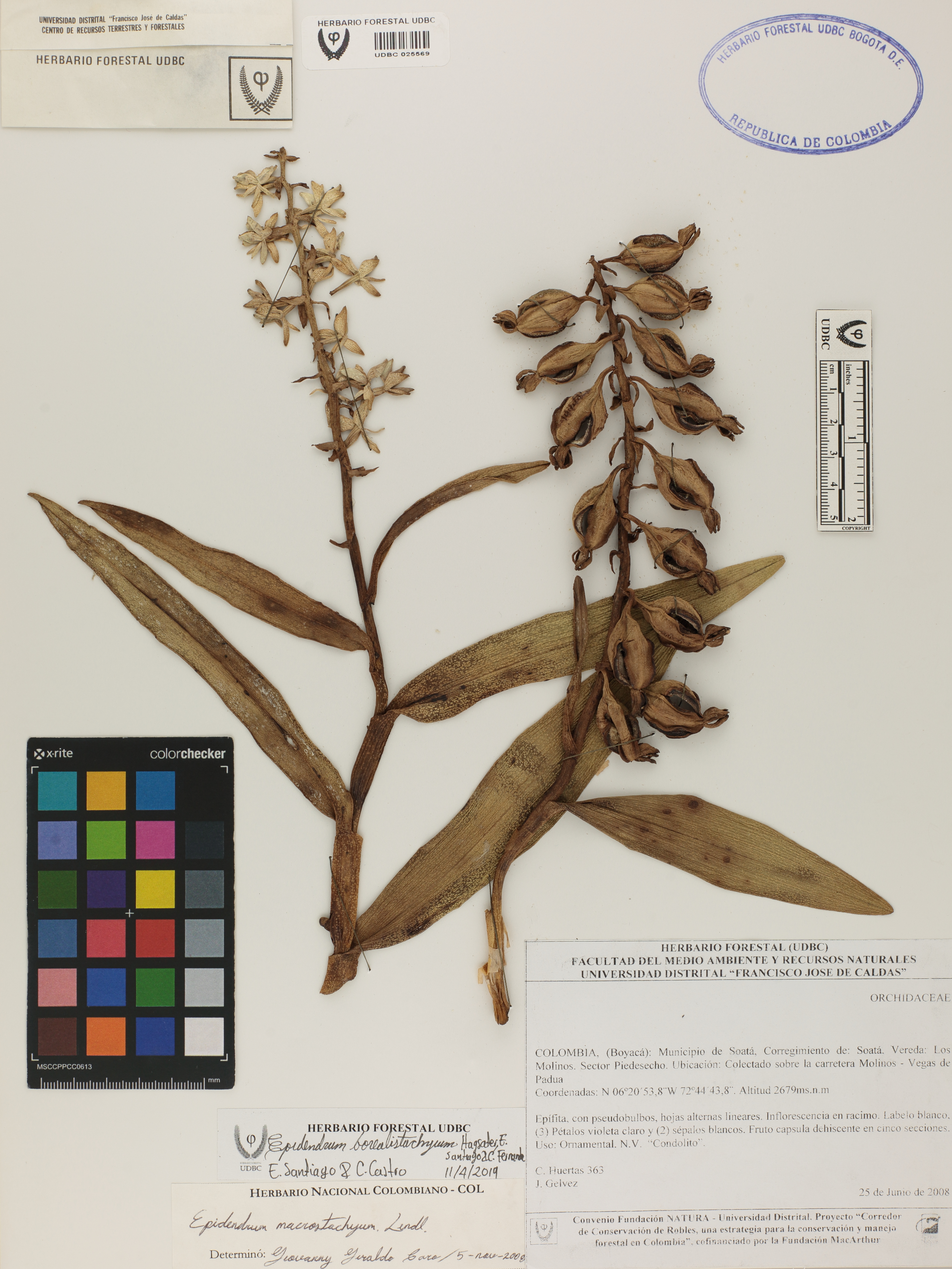 Fotografía del ejemplar Huertas, C. 363, determinado como Epidendrum borealistachyum en el año 2019