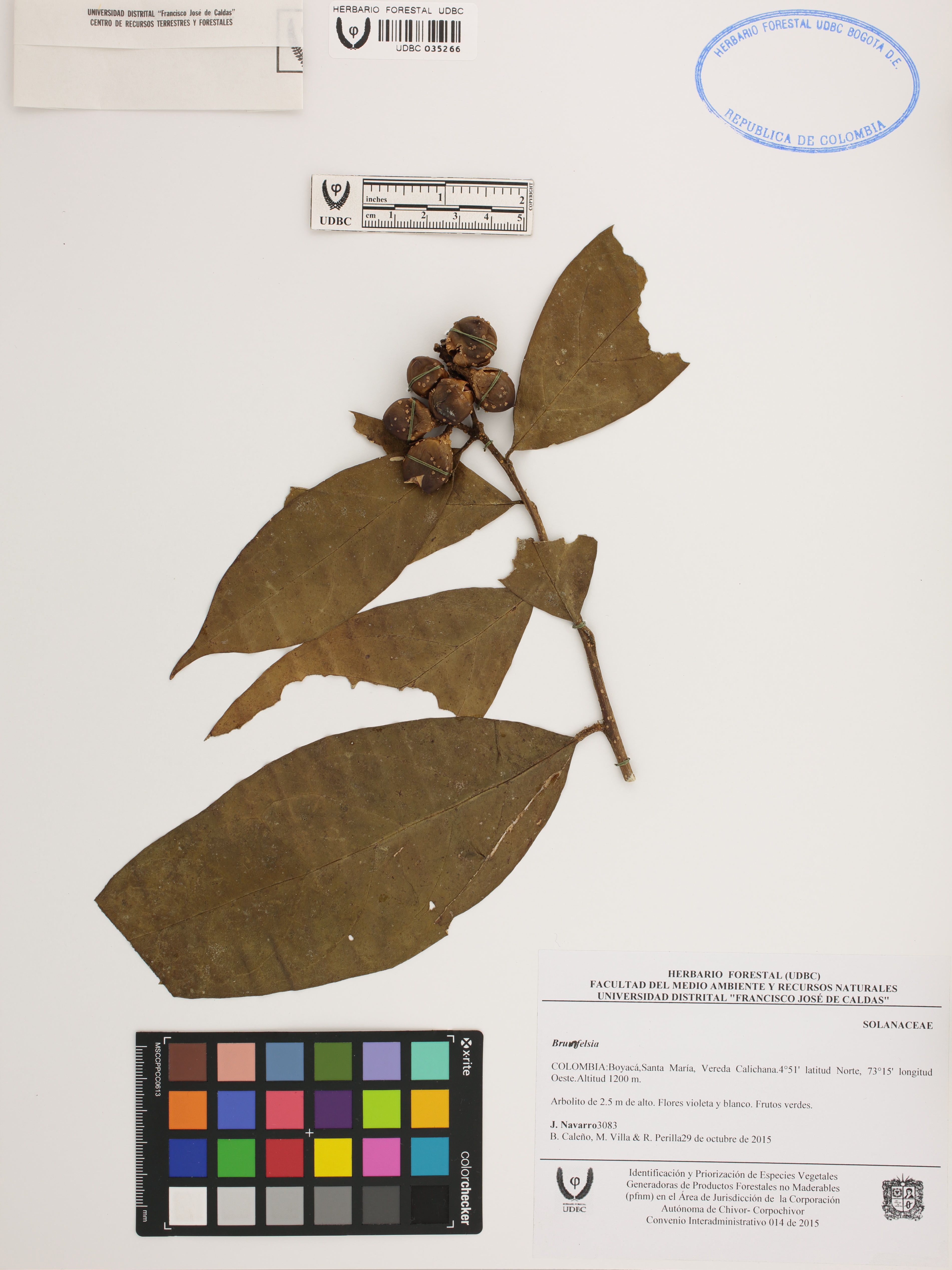 Fotografía del ejemplar Navarro, J. 3038, determinado como Brunfelsia sp.