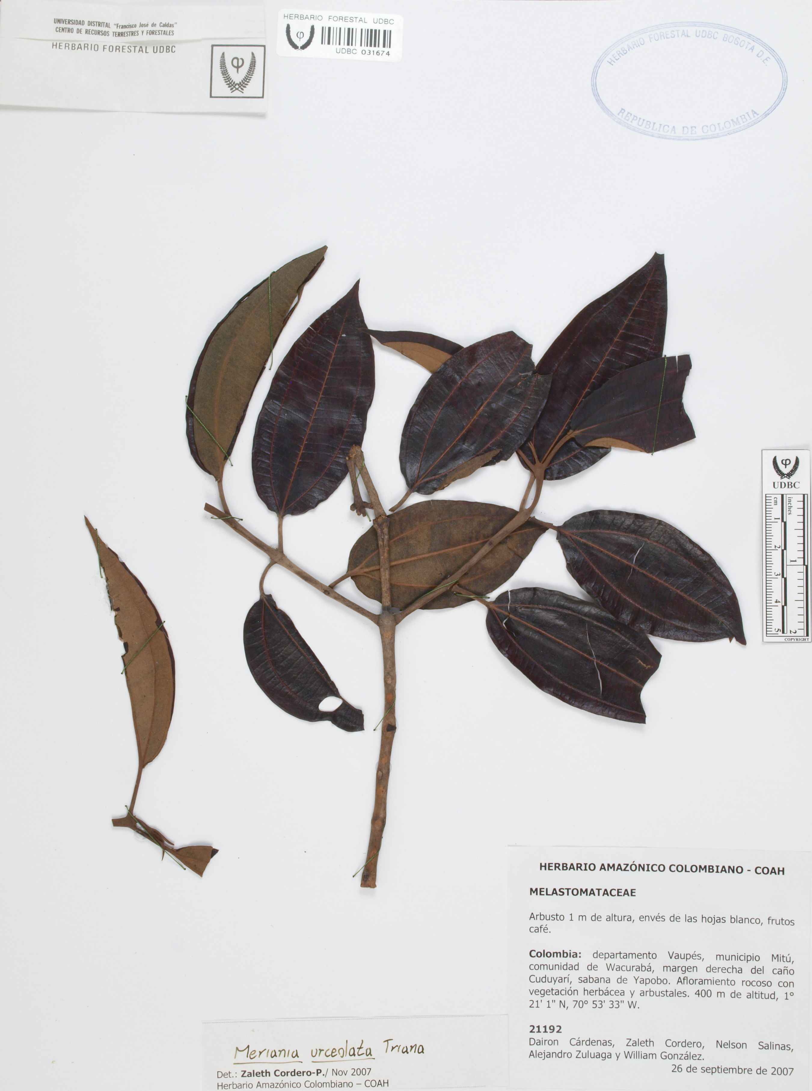 Fotografía del ejemplar Cárdenas, D. 21192, determinado como Meriania urceolata en el año 2007