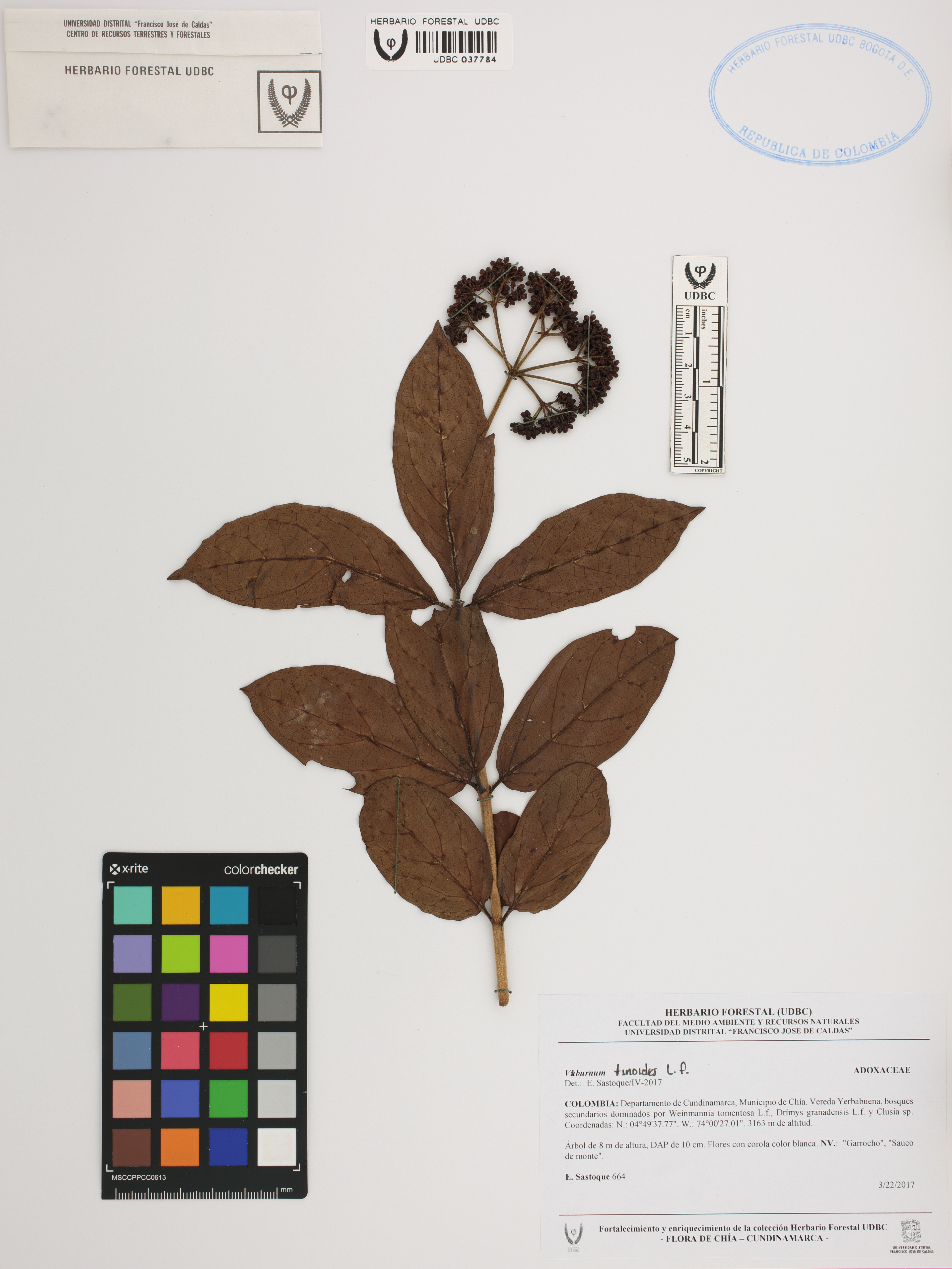 | dc.description | Fotografía del ejemplar Sastoque, E. 664, determinado como Viburnum tinoides en el año 2017 | |