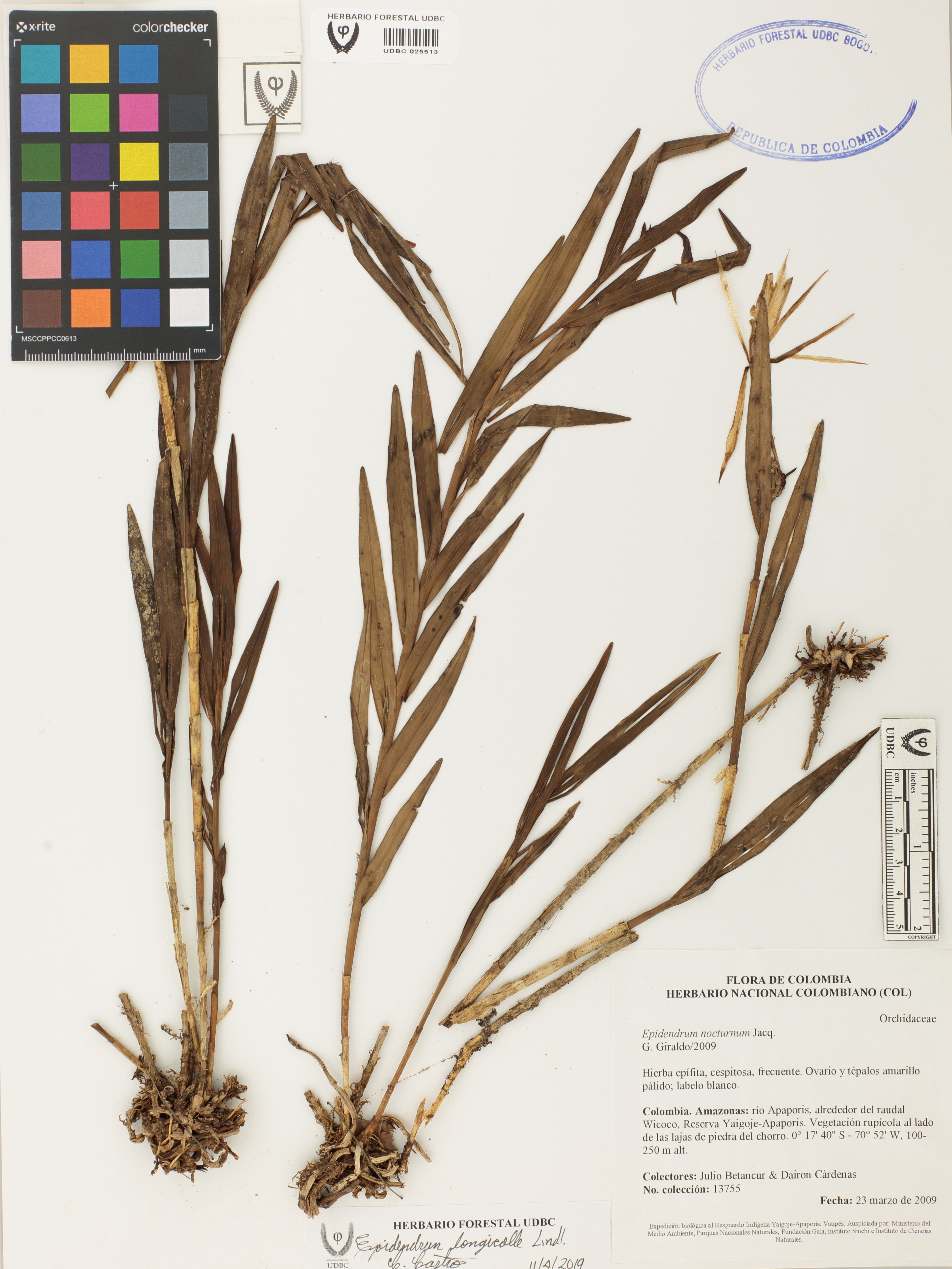 Fotografía del ejemplar Betancur, J. 13755, determinado como Epidendrum longicolle en el año 2019