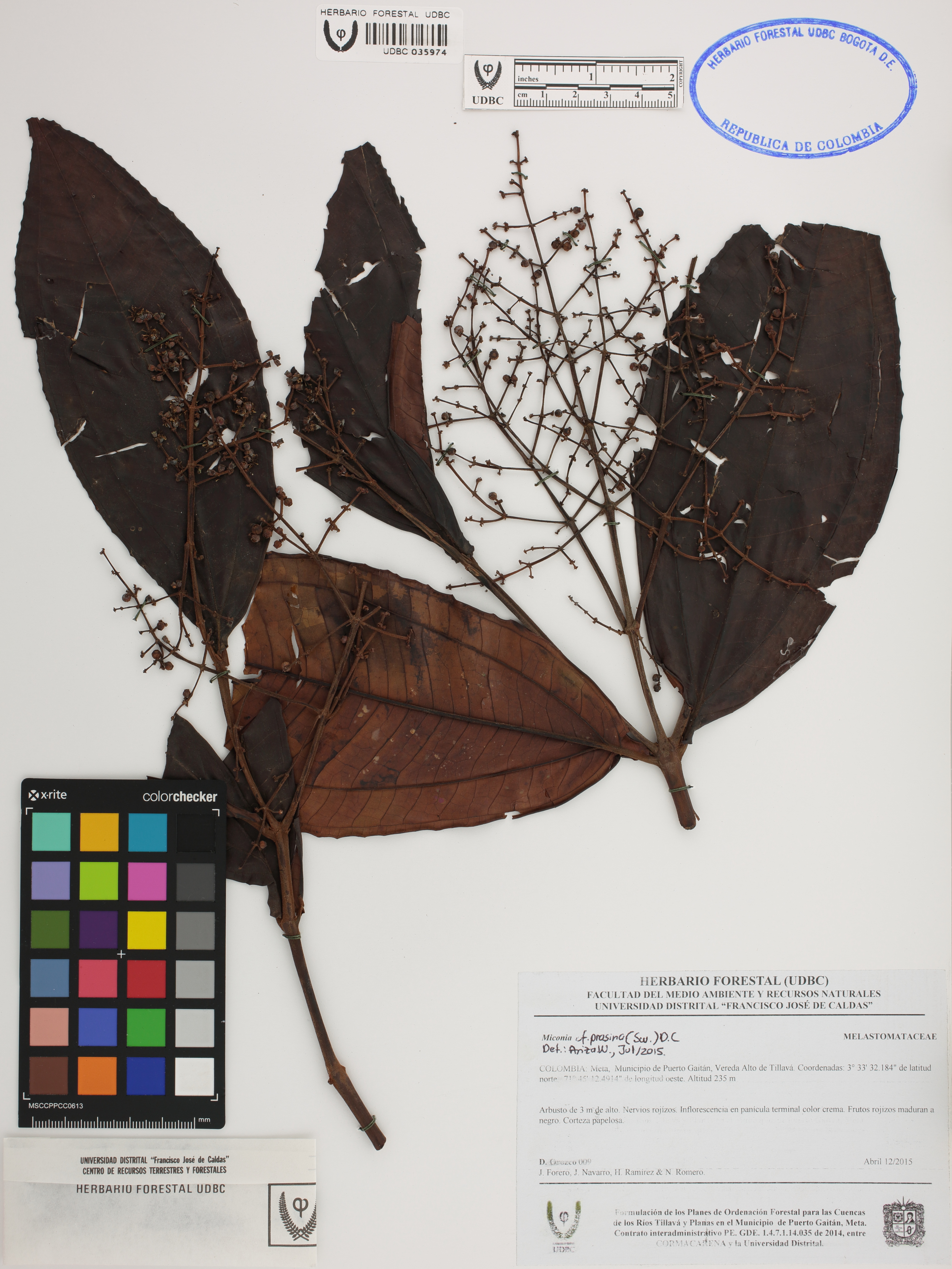 | dc.description | Fotografía del ejemplar Orozco, D. 9, determinado como Miconia prasina en el año 2015 | |