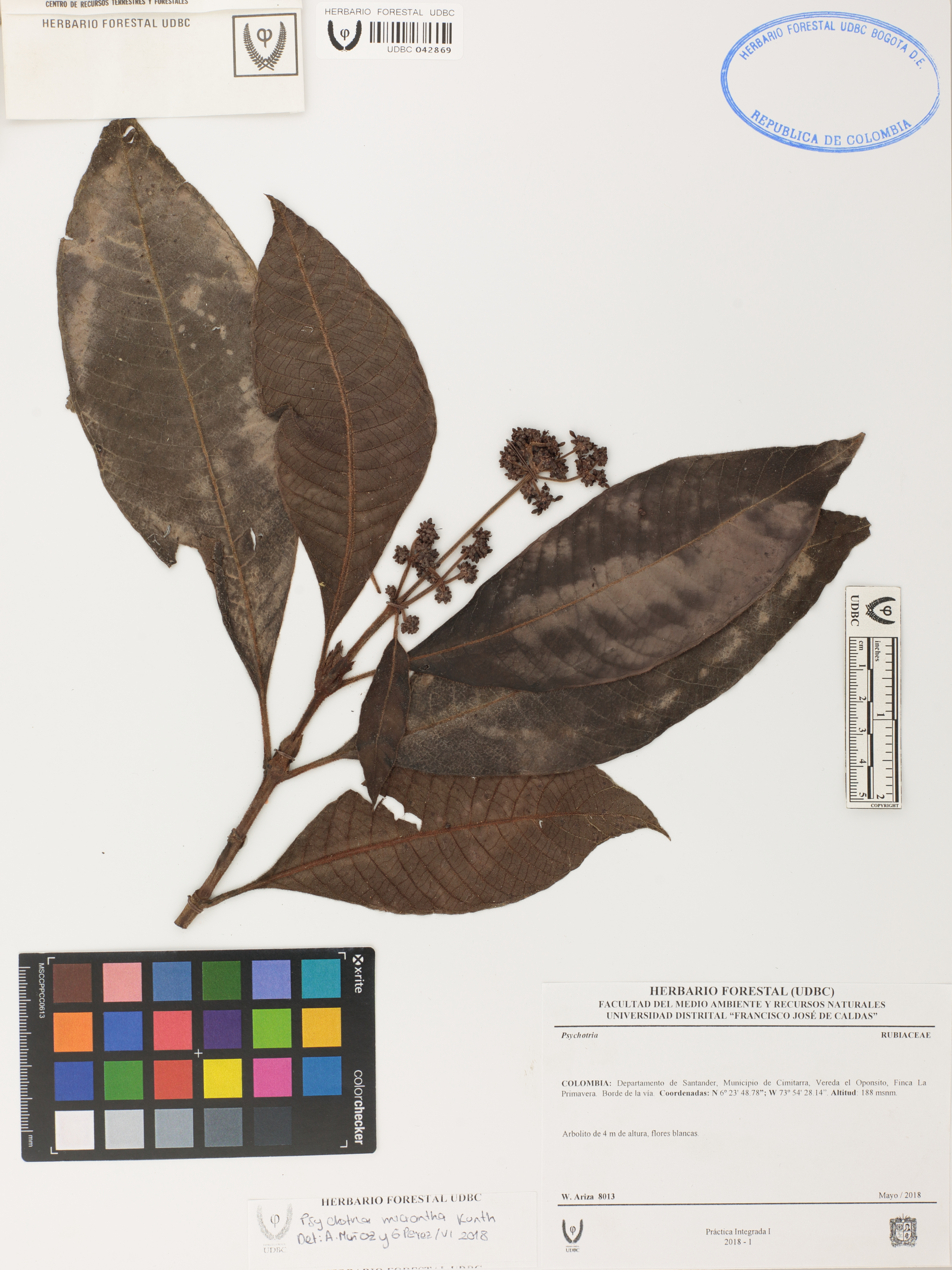 | dc.description | Fotografía del ejemplar Ariza, W. 8013, determinado como Psychotria micrantha en el año 2018 | |