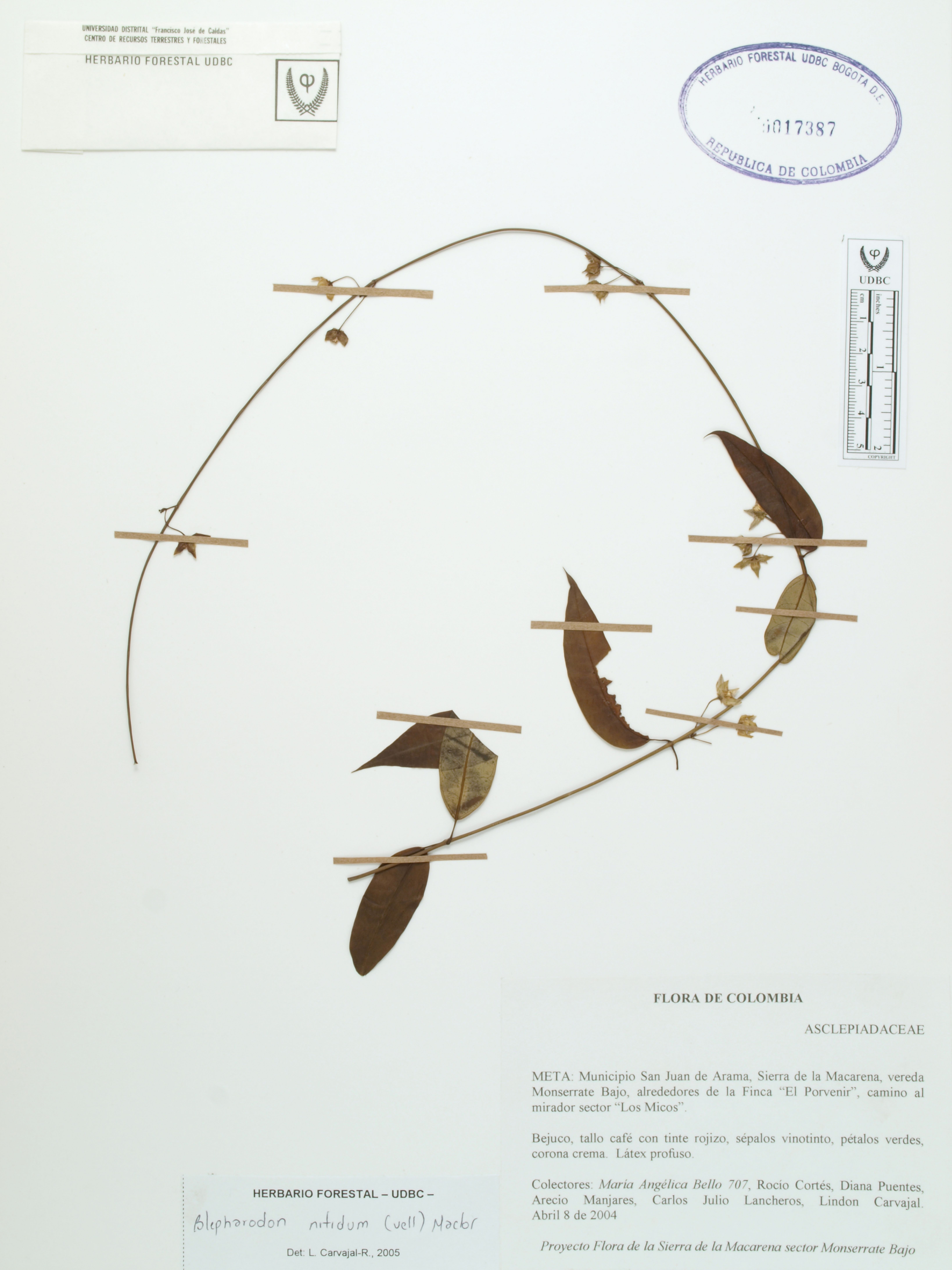 | dc.description | Fotografía del ejemplar Bello, M. 707, determinado como Blepharodon nitidum en el año 2005 | |