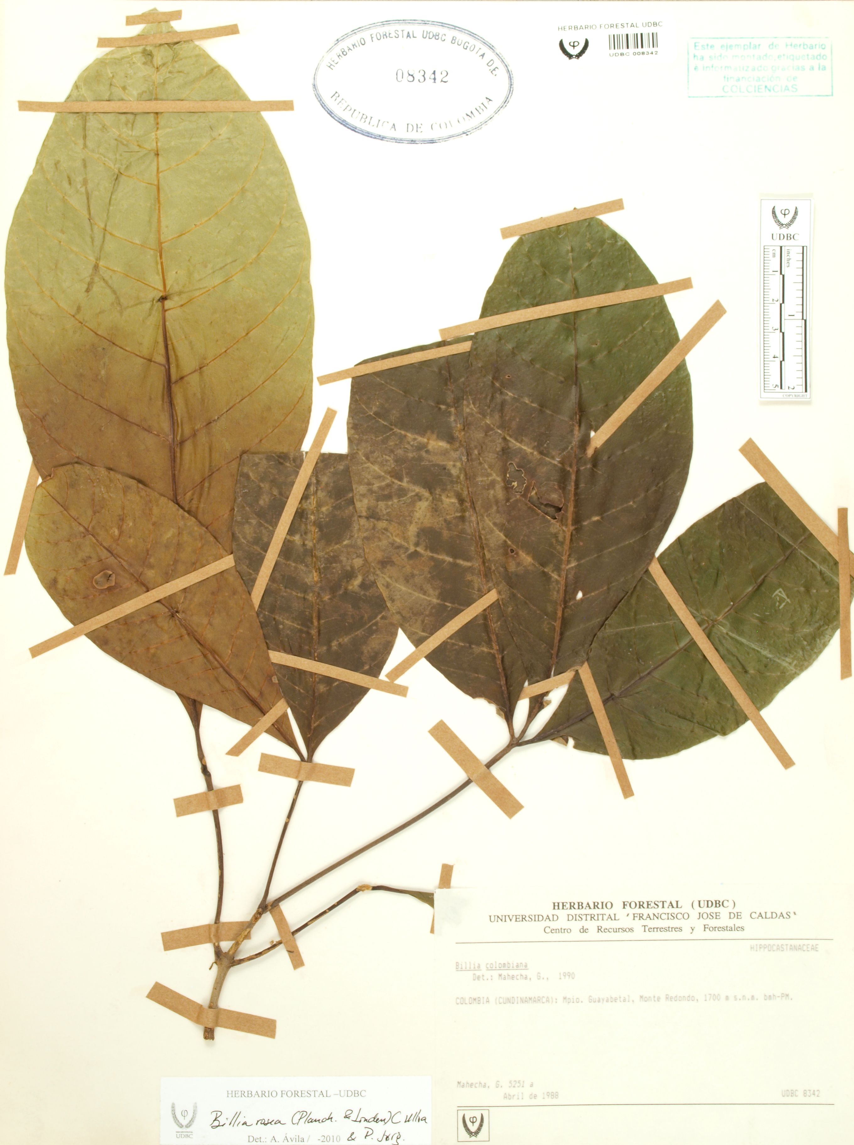 Fotografía del ejemplar Mahecha, G. 5251, determinado como Billia rosea en el año 2010