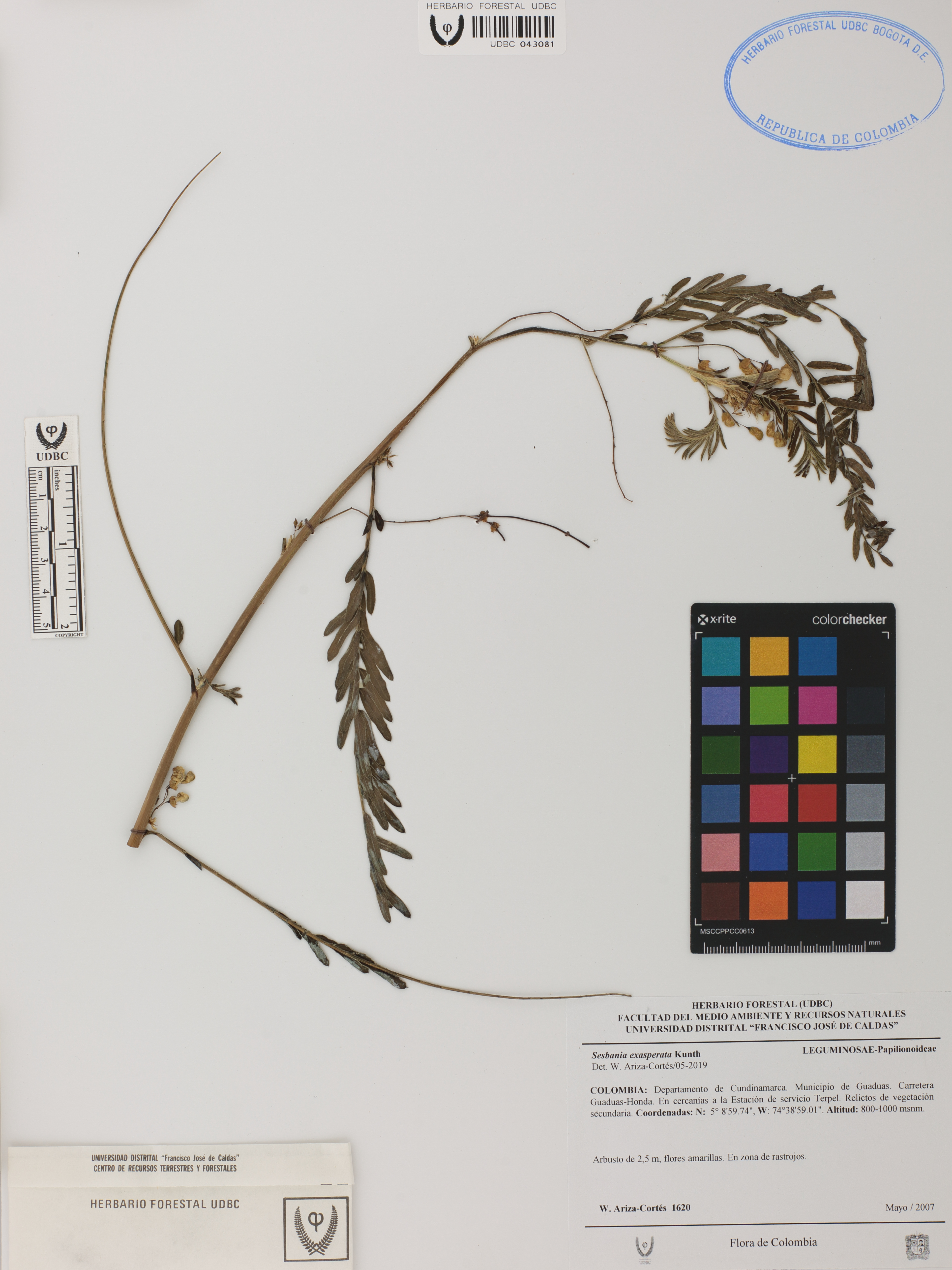 Fotografía del ejemplar Ariza-Cortés, W. 1620, determinado como Sesbania exasperata en el año 2019