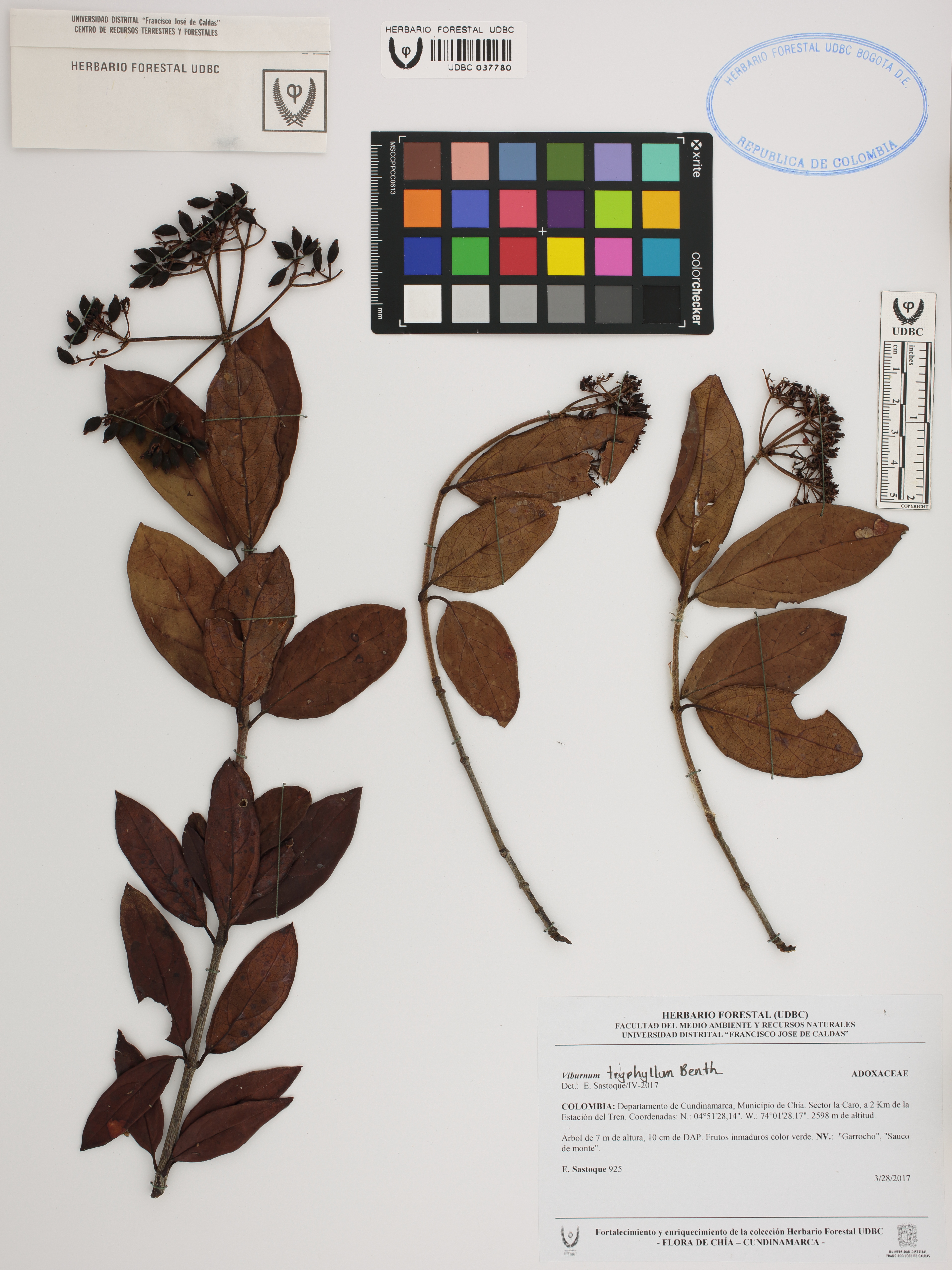 Fotografía del ejemplar Sastoque, E. 925, determinado como Viburnum triphyllum en el año 2017