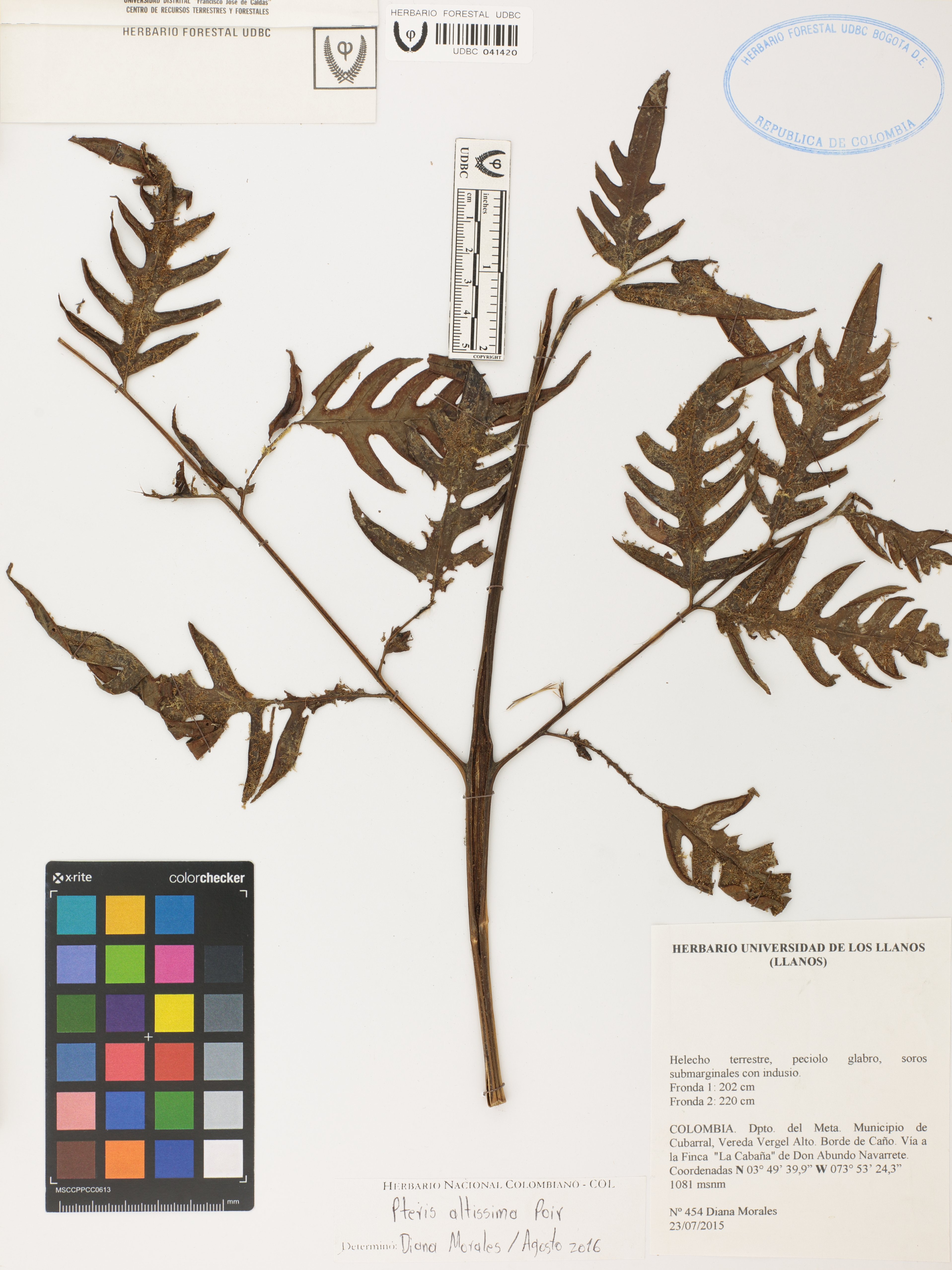 | dc.description | Fotografía del ejemplar Morales, D. 454, determinado como Pteris altissima en el año 2016 | |