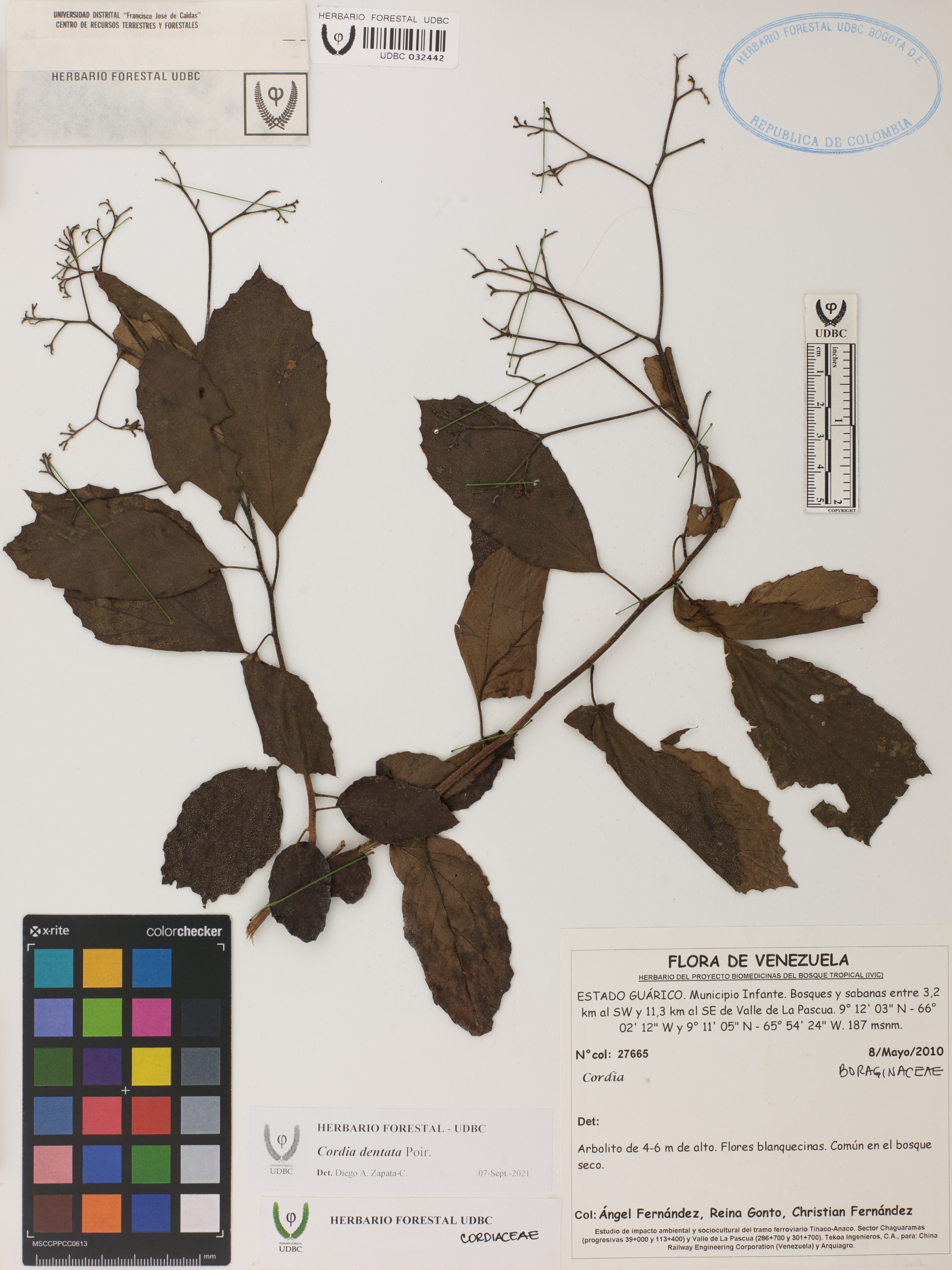 Fotografía del ejemplar Fernández, A. 27665, determinado como Cordia dentata en el año 2021