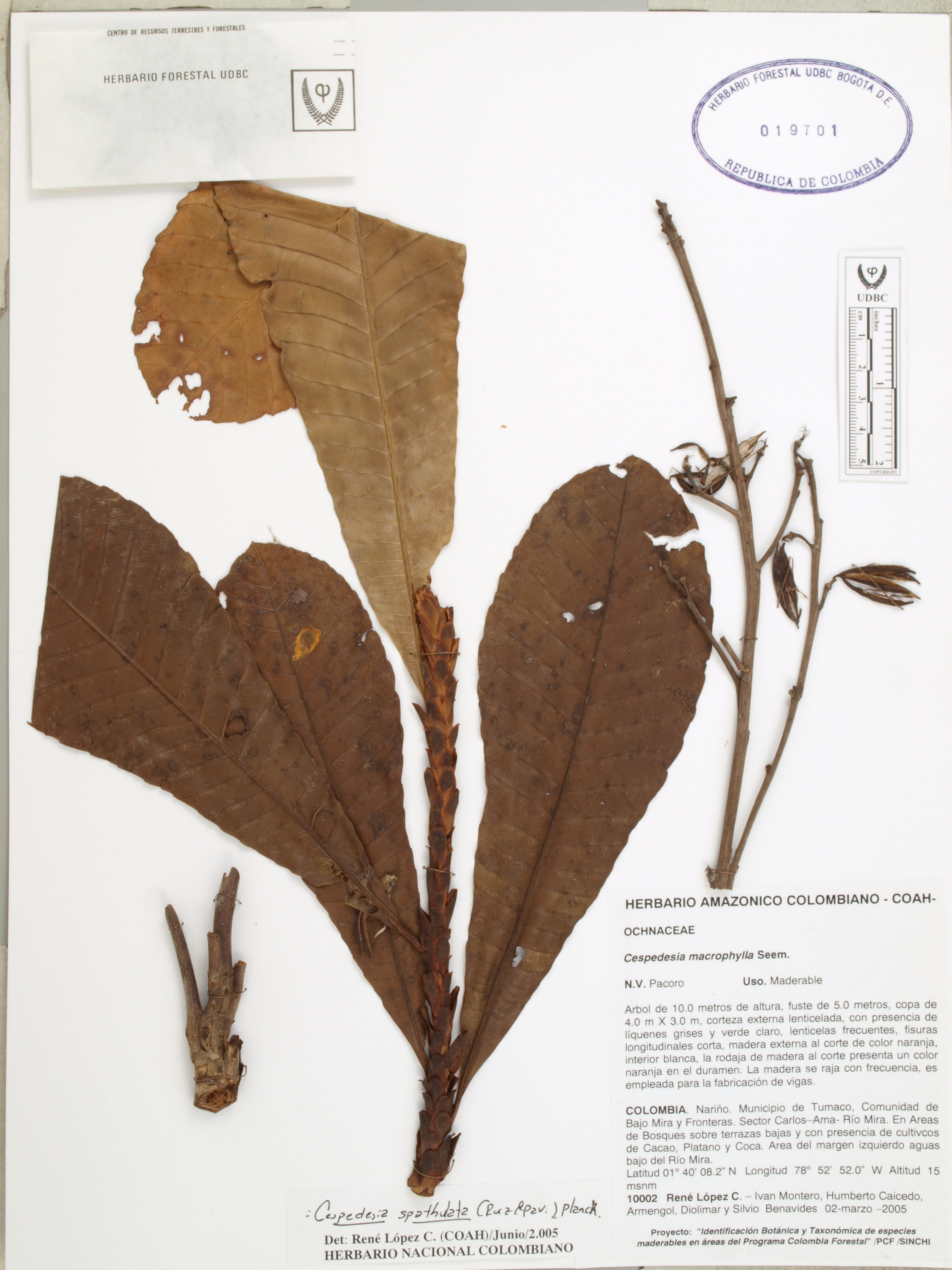 | dc.description | Fotografía del ejemplar López, R. 10002, determinado como Cespedesia spathulata en el año 2005 | |