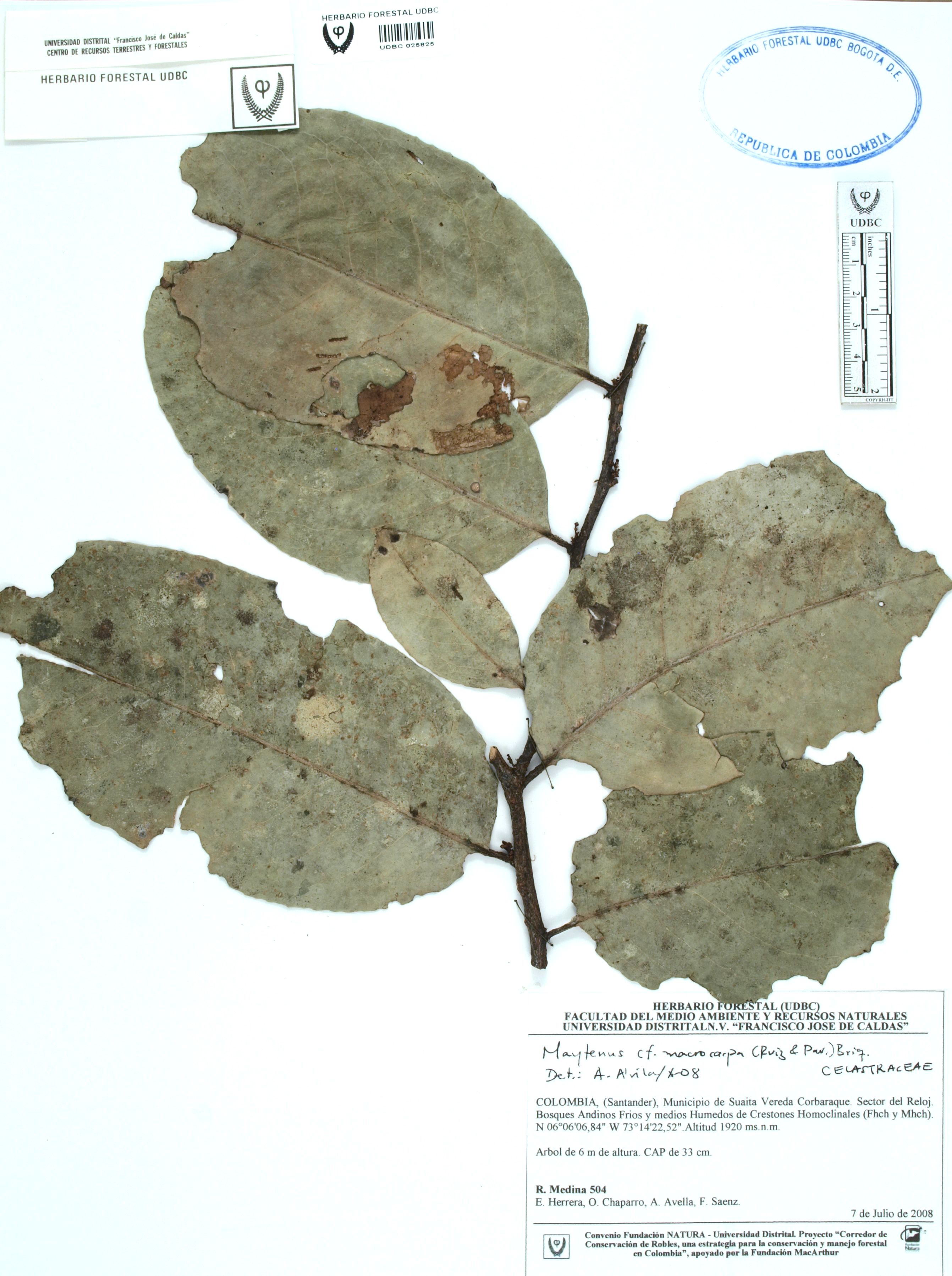 Fotografía del ejemplar Medina, R. 504, determinado como Monteverdia macrocarpa en el año 2008
