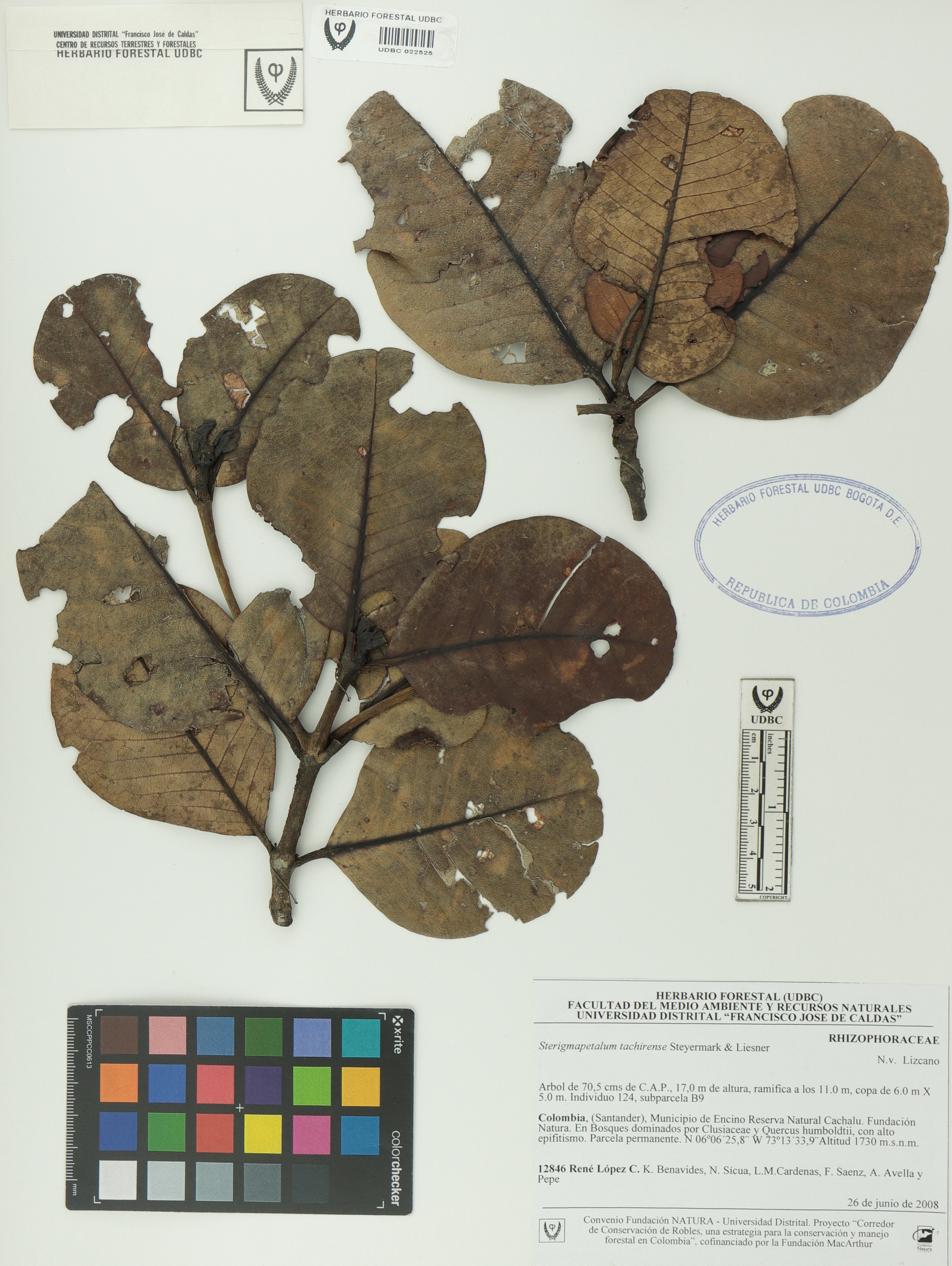Fotografía del ejemplar López, R. 12846, determinado como Sterigmapetalum tachirense