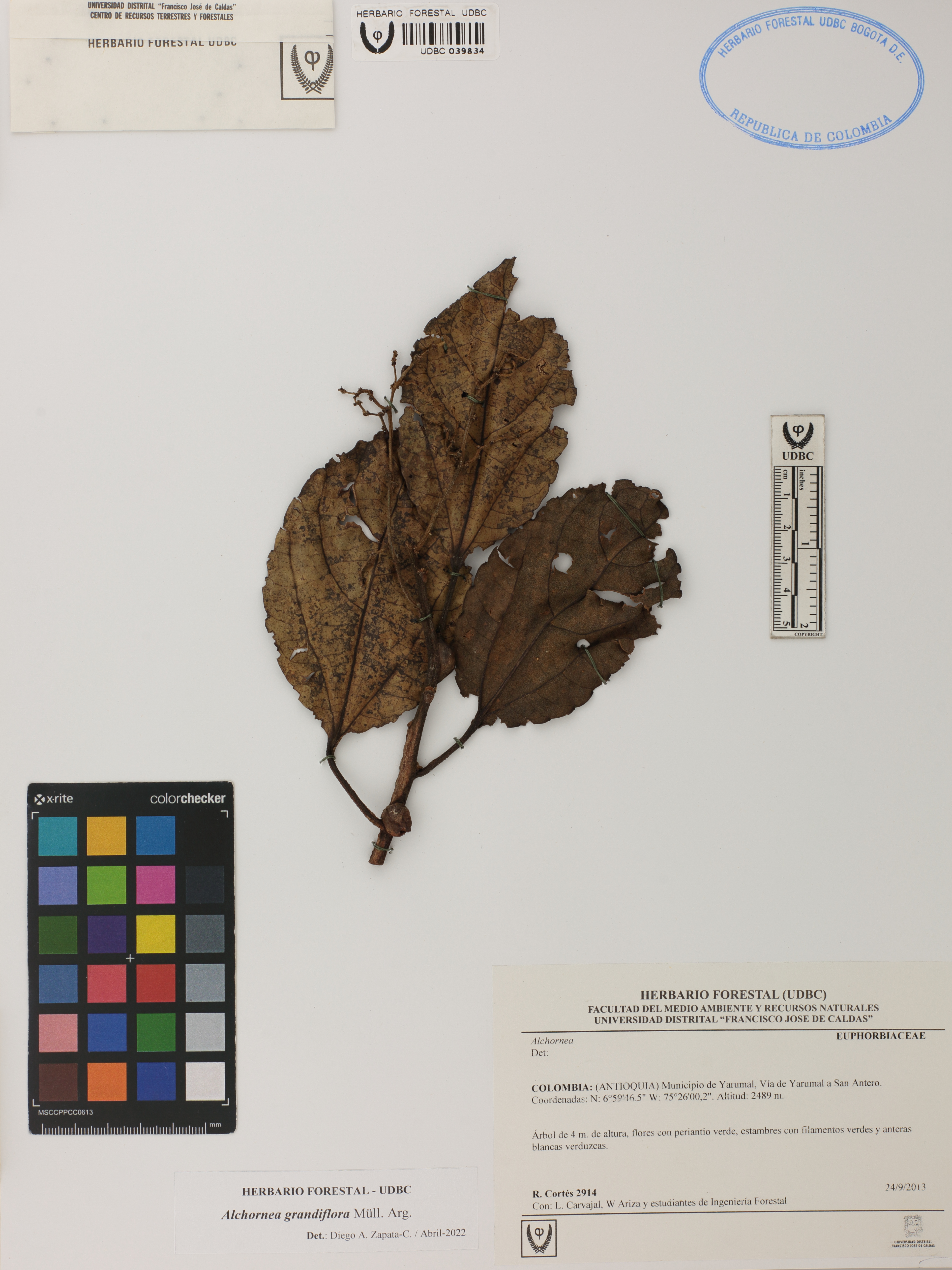 Fotografía del ejemplar Cortés, R. 2914, determinado como Alchornea grandiflora en el año 2022