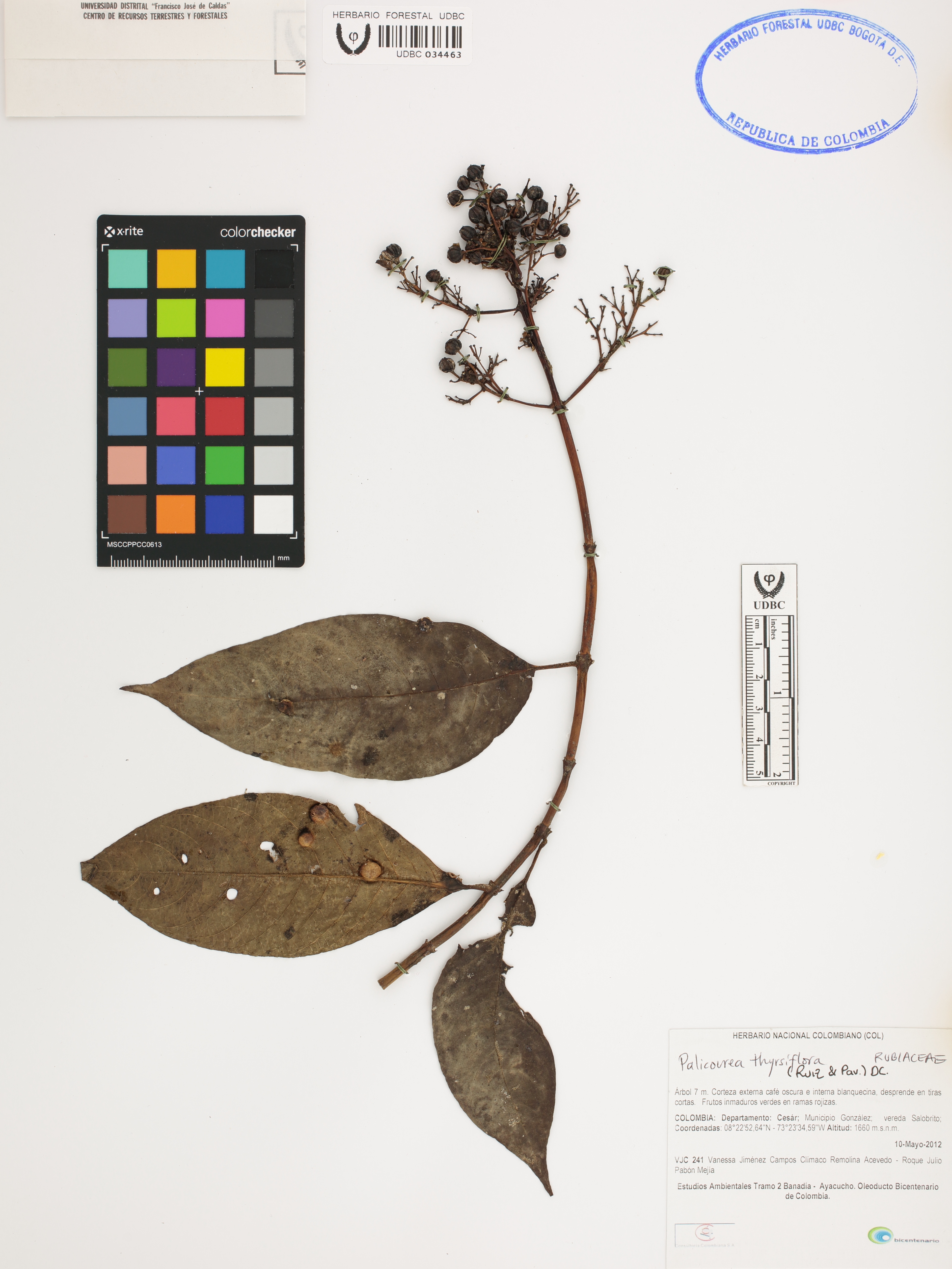 Fotografía del ejemplar Jiménez, V. 241, determinado como Palicourea thyrsiflora