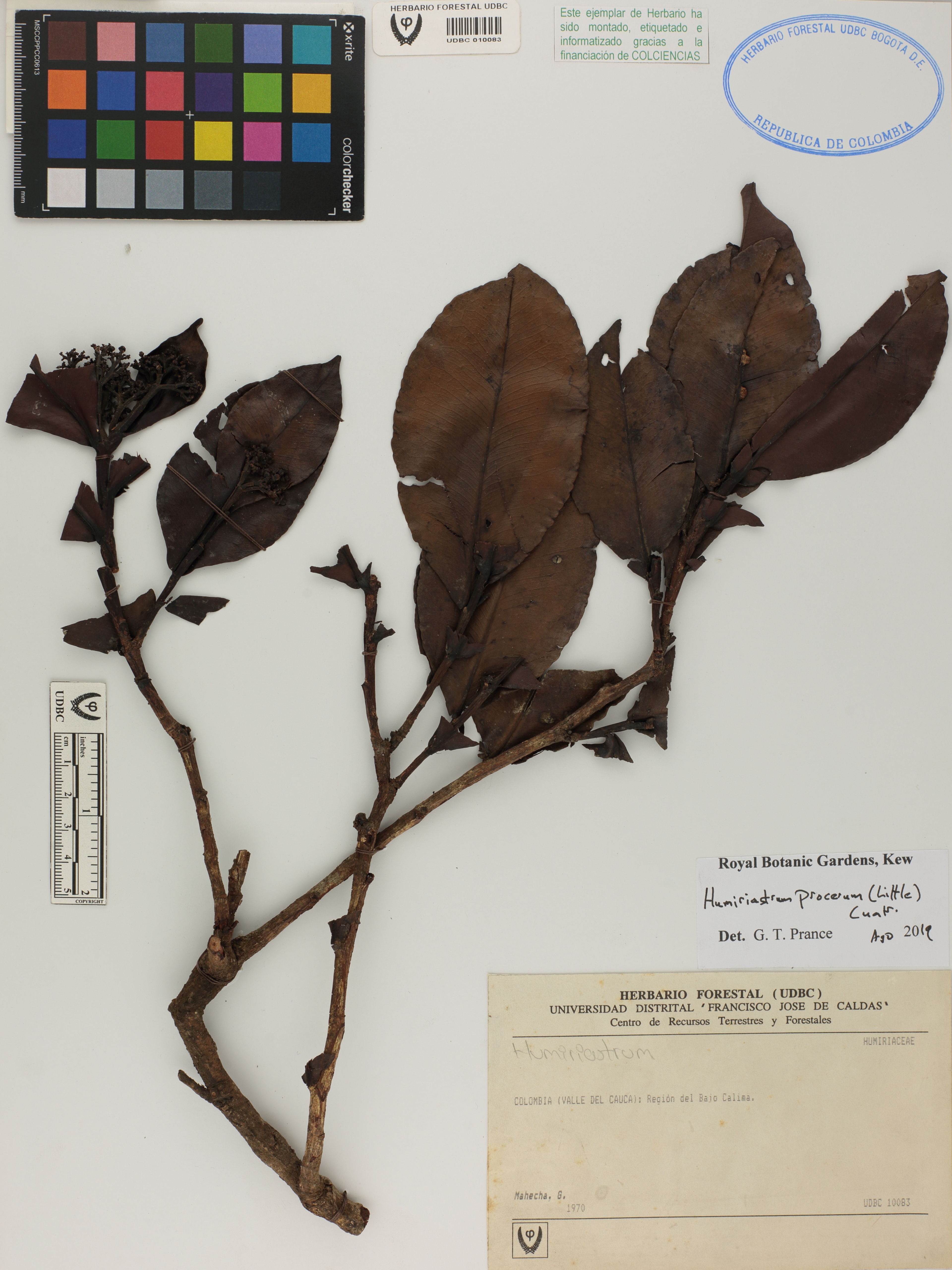 Fotografía del ejemplar Mahecha, G., determinado como Humiriastrum procerum en el año 2019
