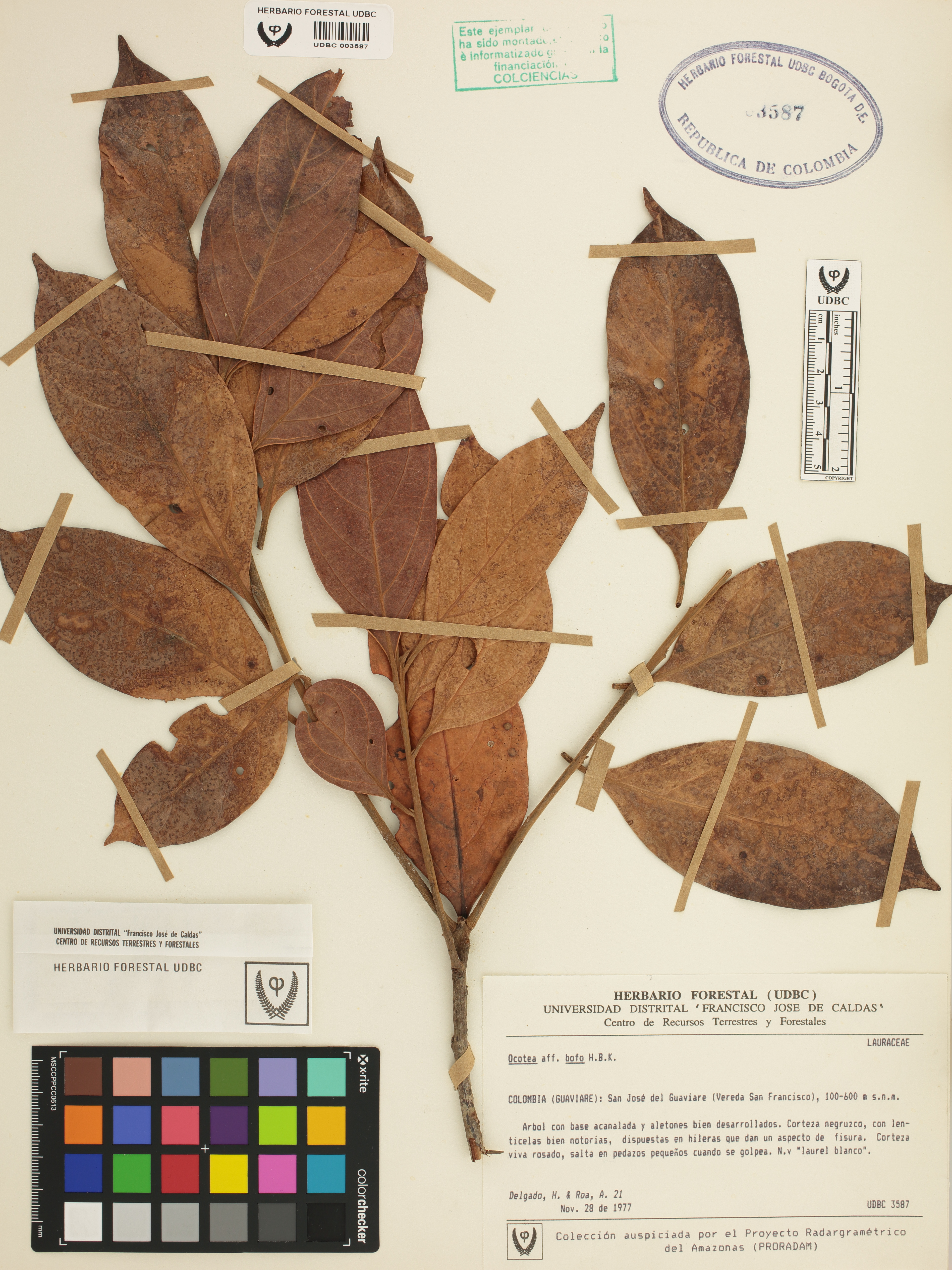 Fotografía del ejemplar Delgado, H. 21, determinado como Ocotea bofo