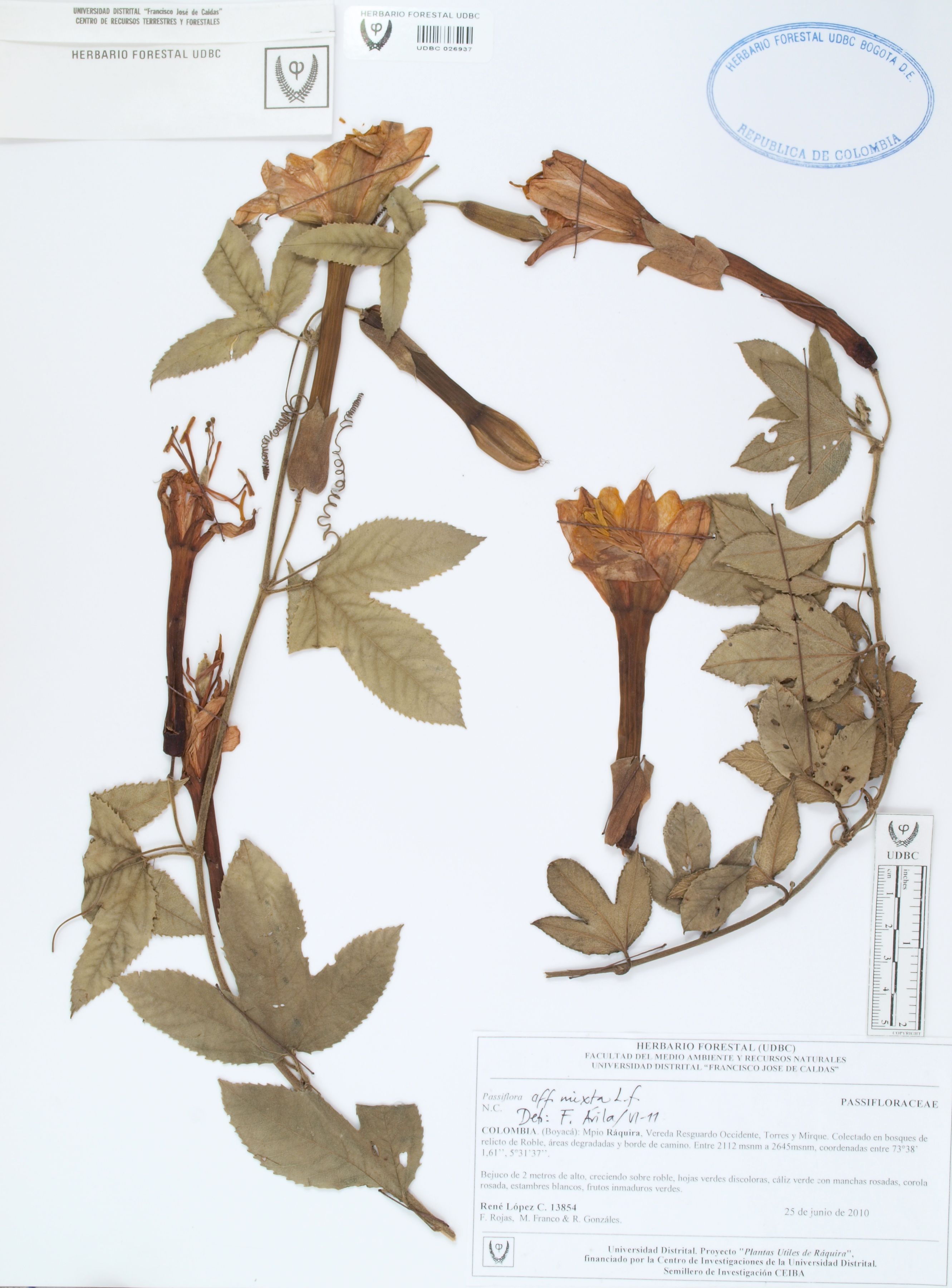 | dc.description | Fotografía del ejemplar López, R. 13854, determinado como Passiflora mixta en el año 2011 | |