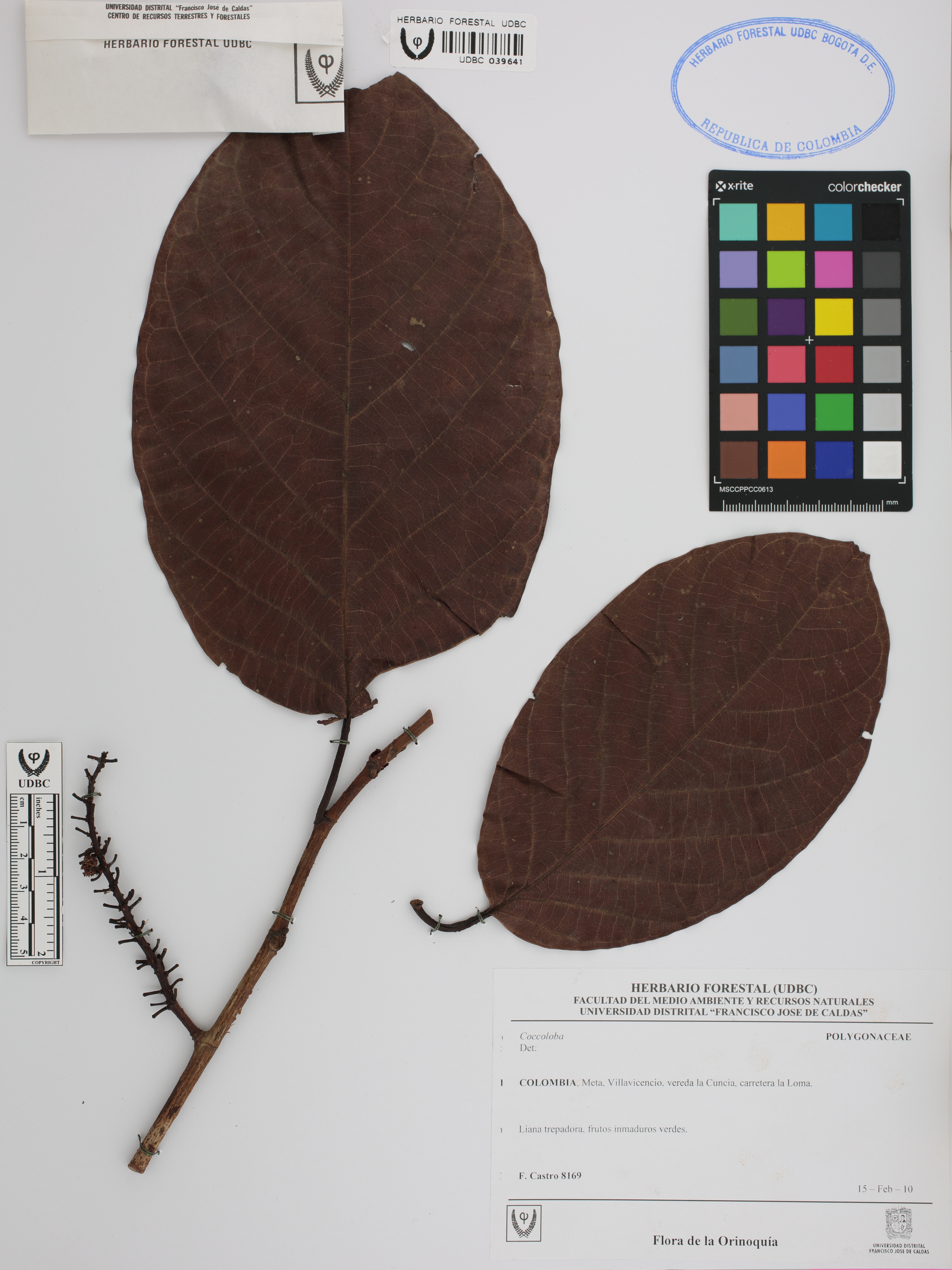 | dc.description | Fotografía del ejemplar Castro, F. 8169, determinado como Coccoloba sp. | |