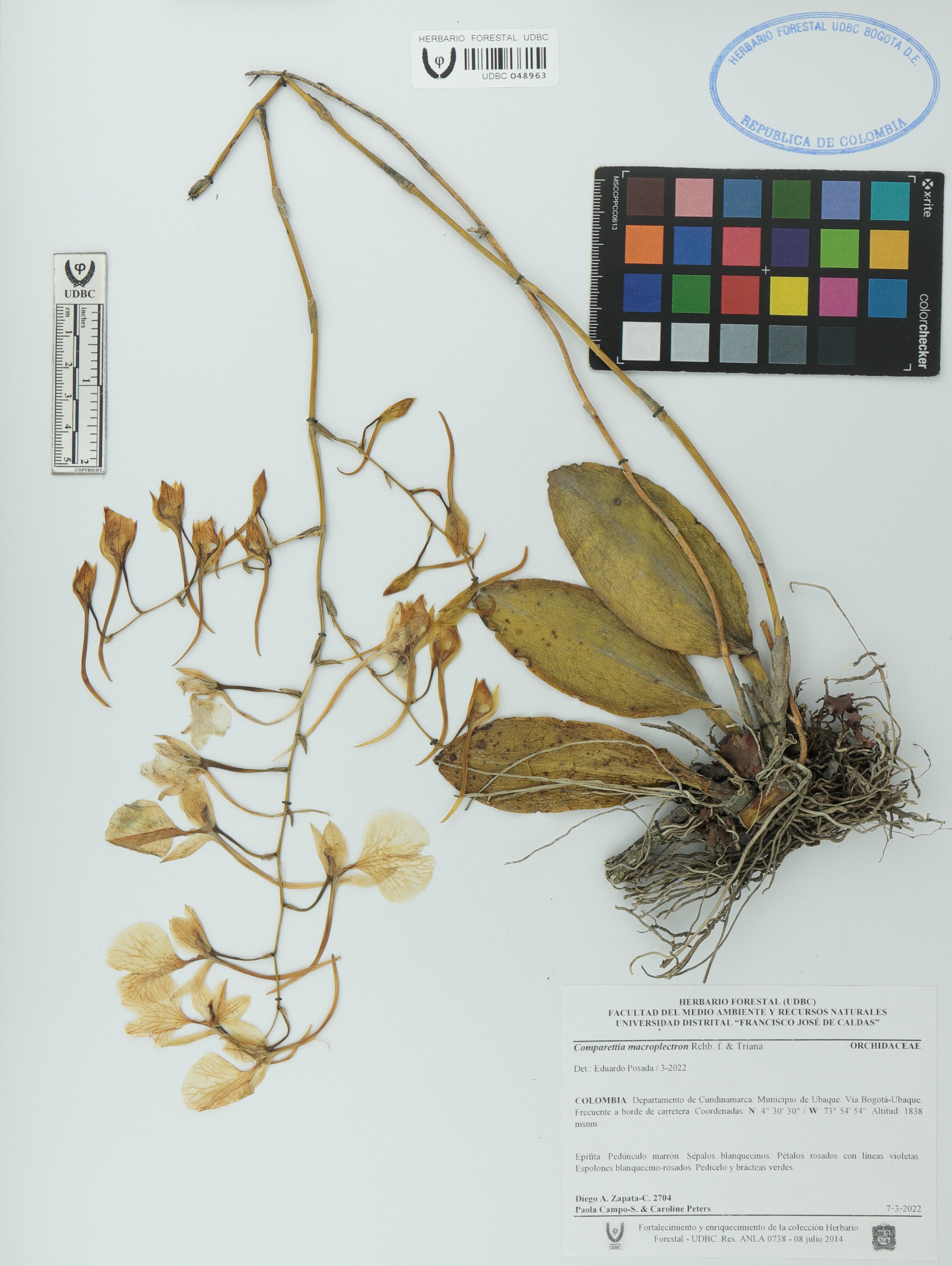 Fotografía del ejemplar Zapata-C., D. 2704, determinado como Comparettia macroplectron en el año 2022