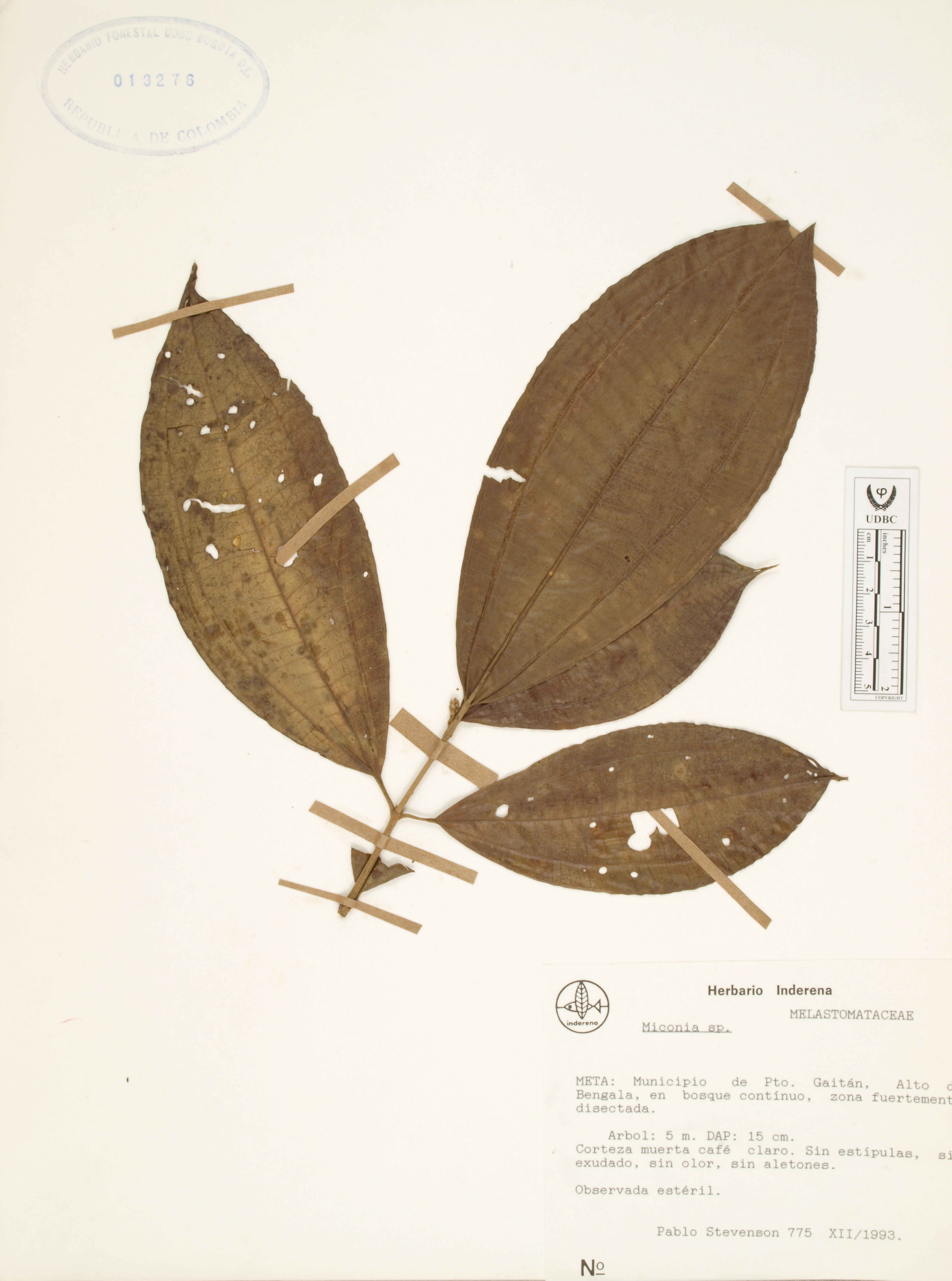 Fotografía del ejemplar Stevenson, P. 775, determinado como Miconia sp.