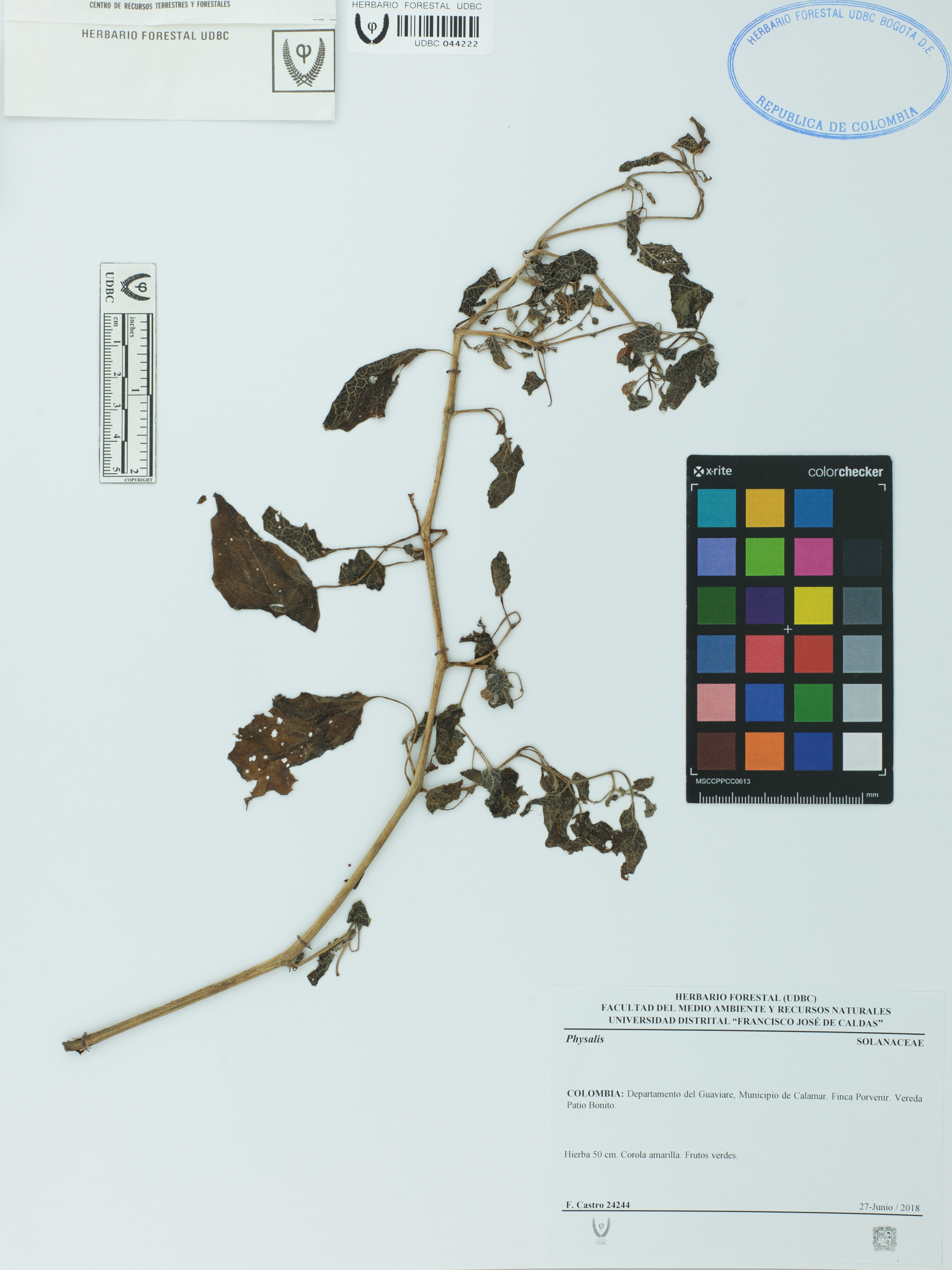 Fotografía del ejemplar Castro, F. 24244, determinado como Physalis sp.