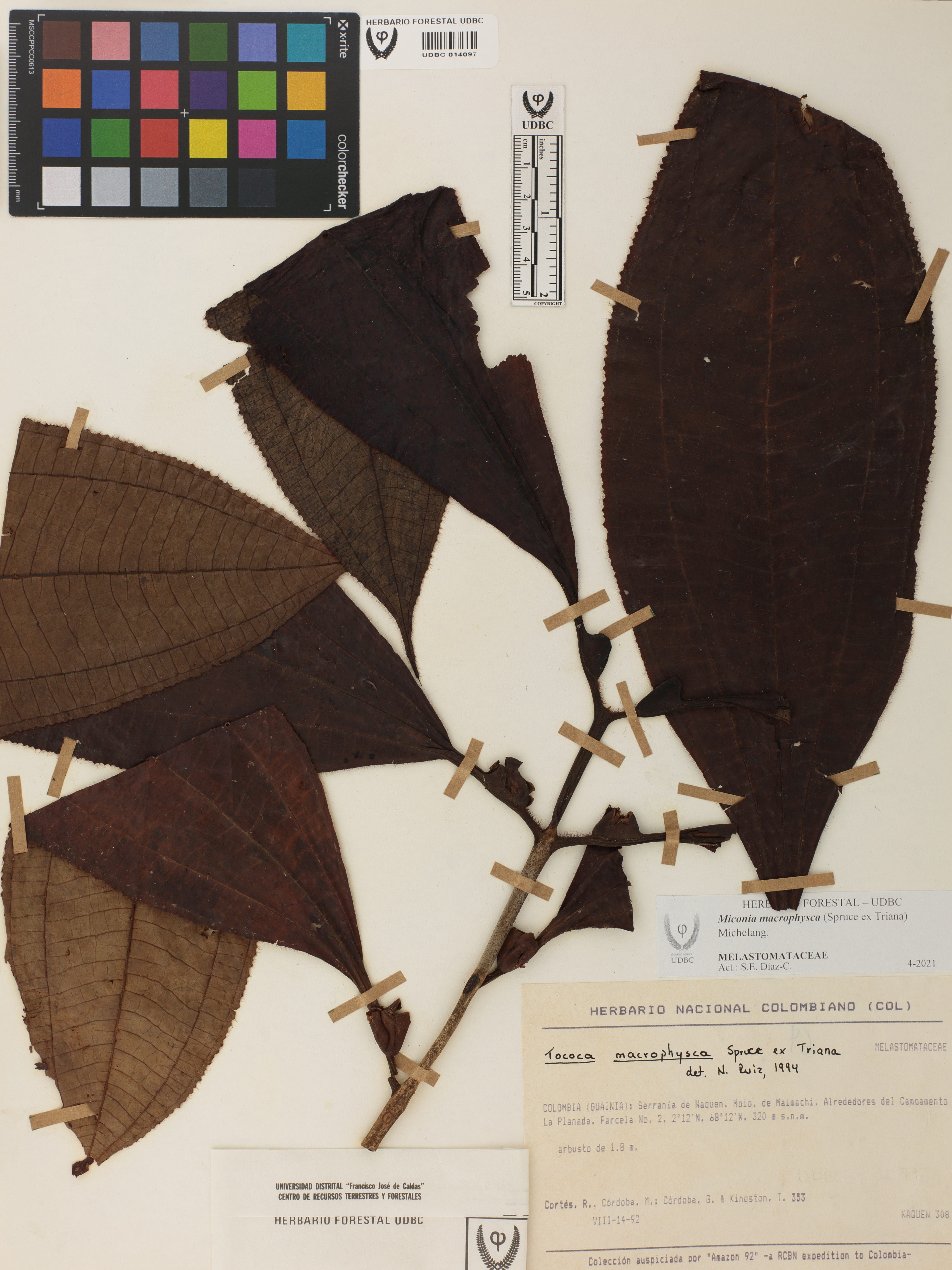Fotografía del ejemplar Cortés-B., R. 353, determinado como Miconia macrophysca en el año 1994