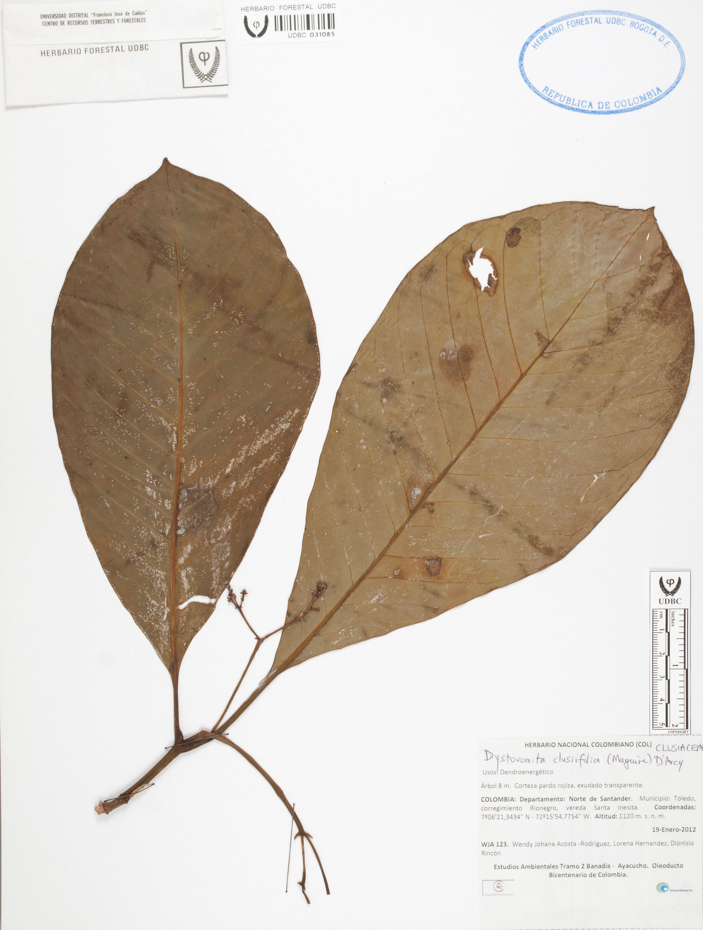 | dc.description | Fotografía del ejemplar Acosta-Rodríguez, W. 123, determinado como Dystovomita clusiifolia | |