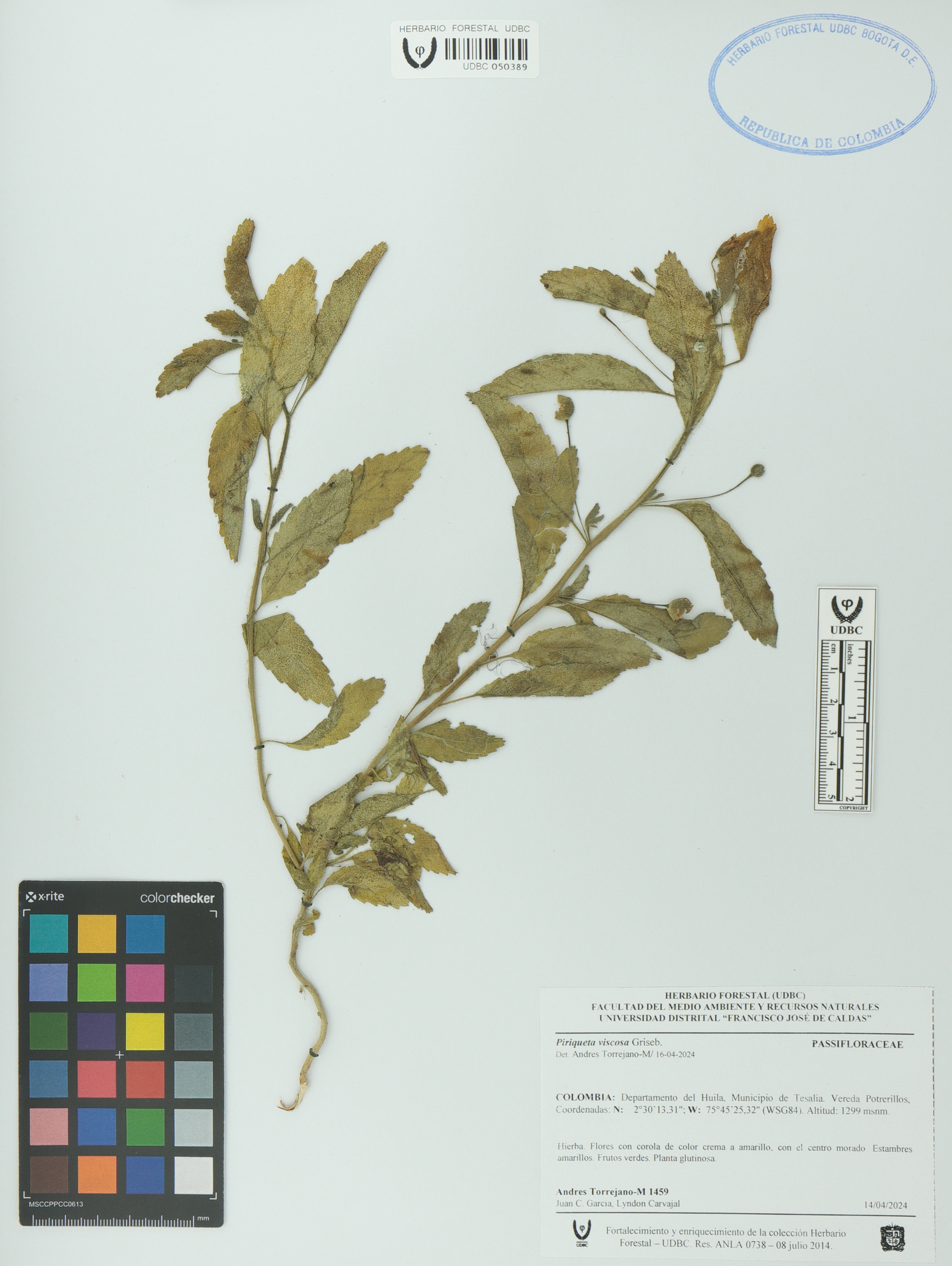 Fotografía del ejemplar Torrejano-M., A. 1459, determinado como Piriqueta viscosa en el año 2024