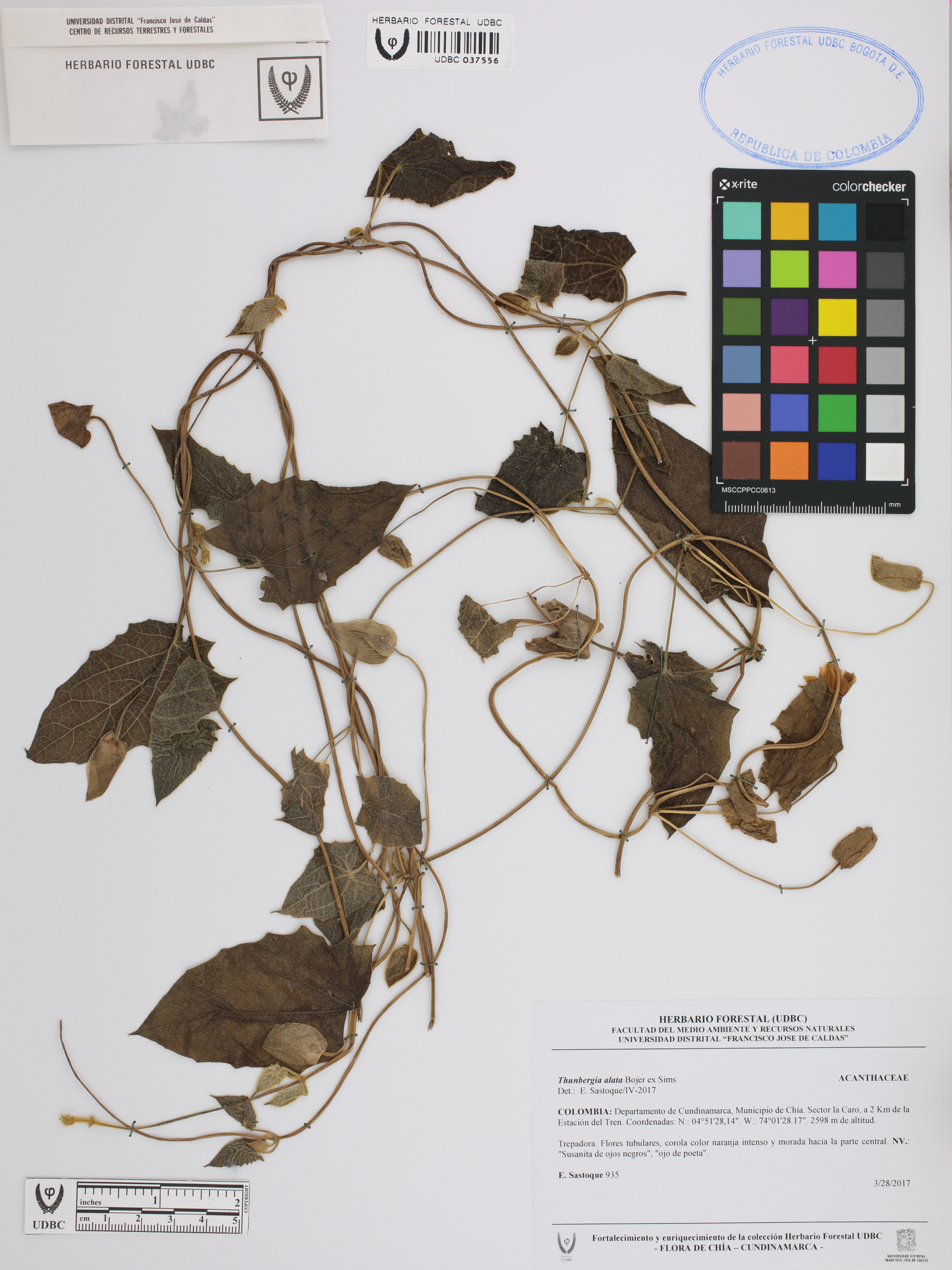 | dc.description | Fotografía del ejemplar Sastoque, E. 935, determinado como Thunbergia alata en el año 2017 | |