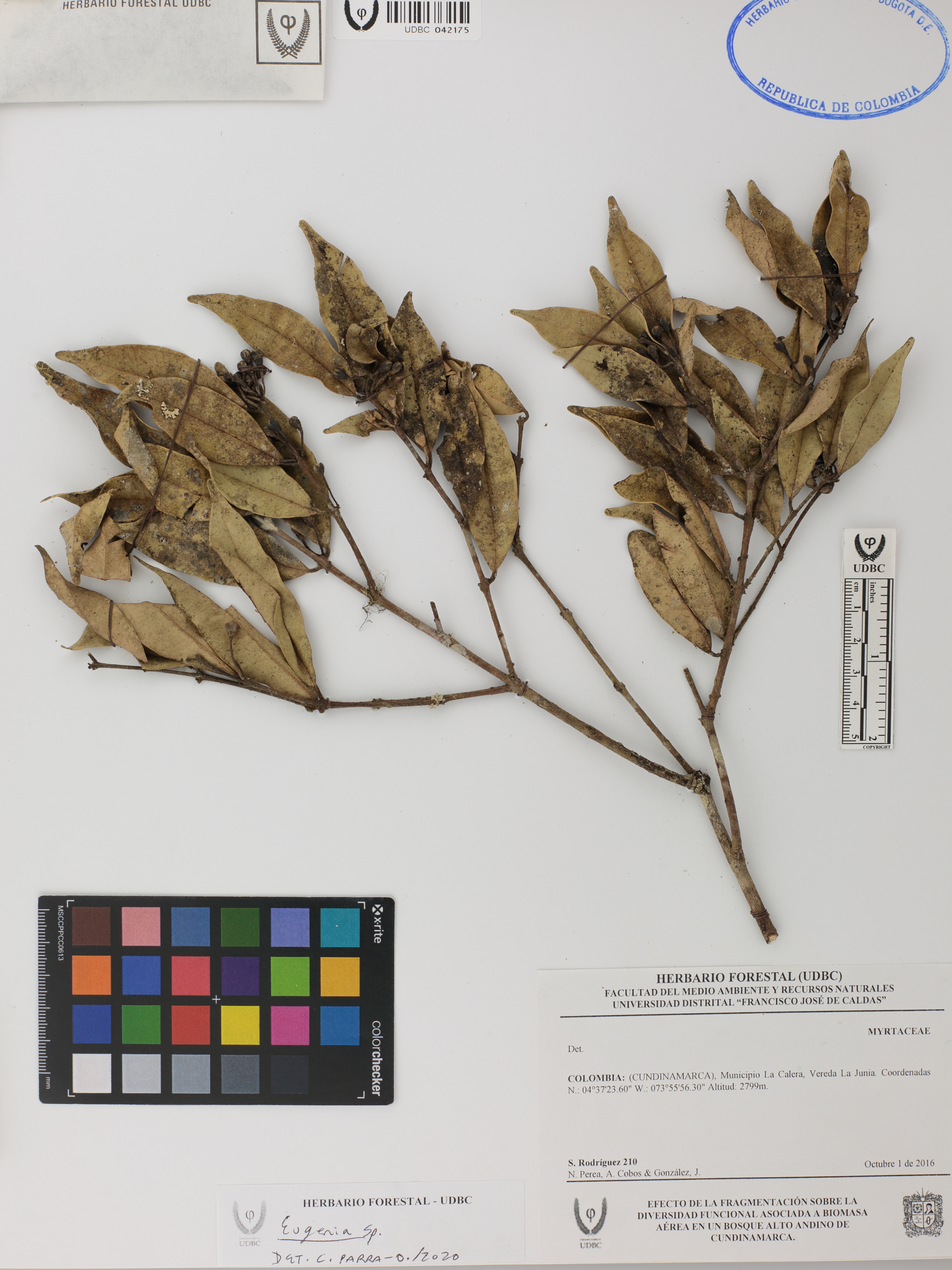 | dc.description | Fotografía del ejemplar Rodríguez, S. 210, determinado como Eugenia sp. en el año 2020 | |