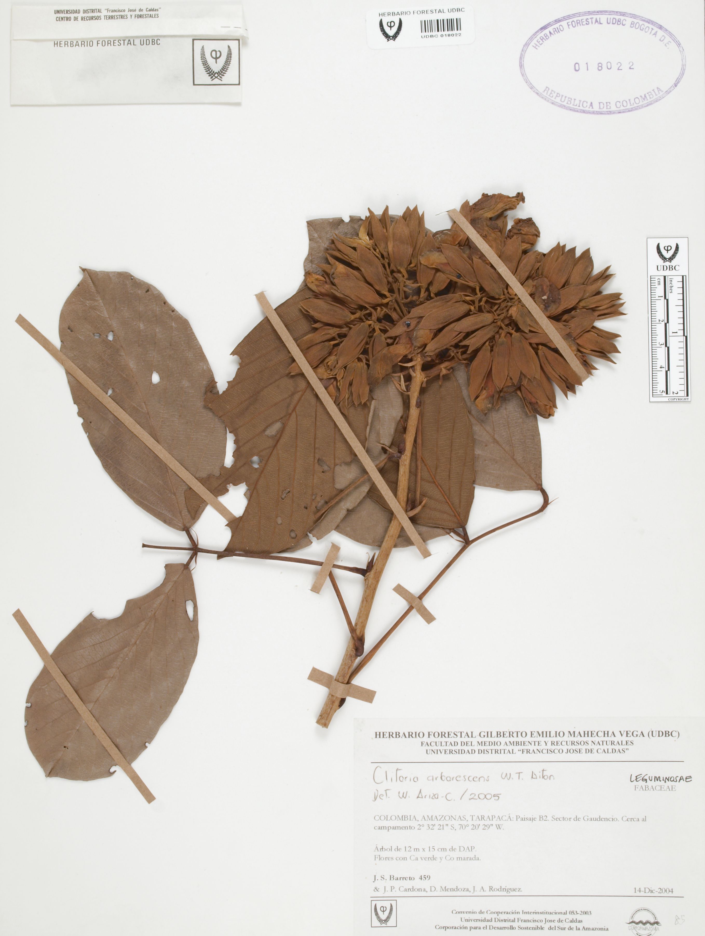 | dc.description | Fotografía del ejemplar Barreto, J. 459, determinado como Clitoria arborescens en el año 2005 | |