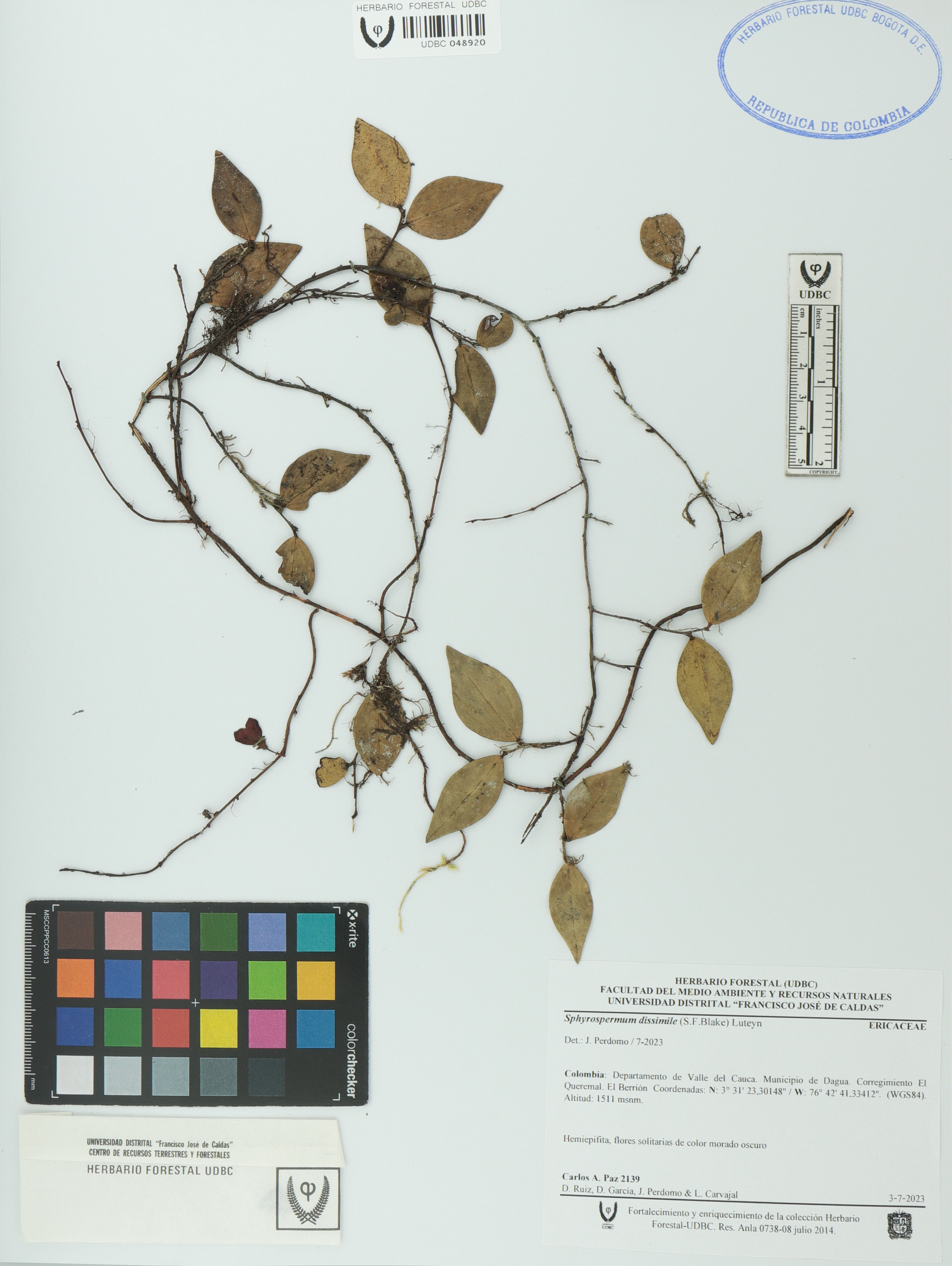 Fotografía del ejemplar Paz, C. 2139, determinado como Sphyrospermum dissimile en el año 2023