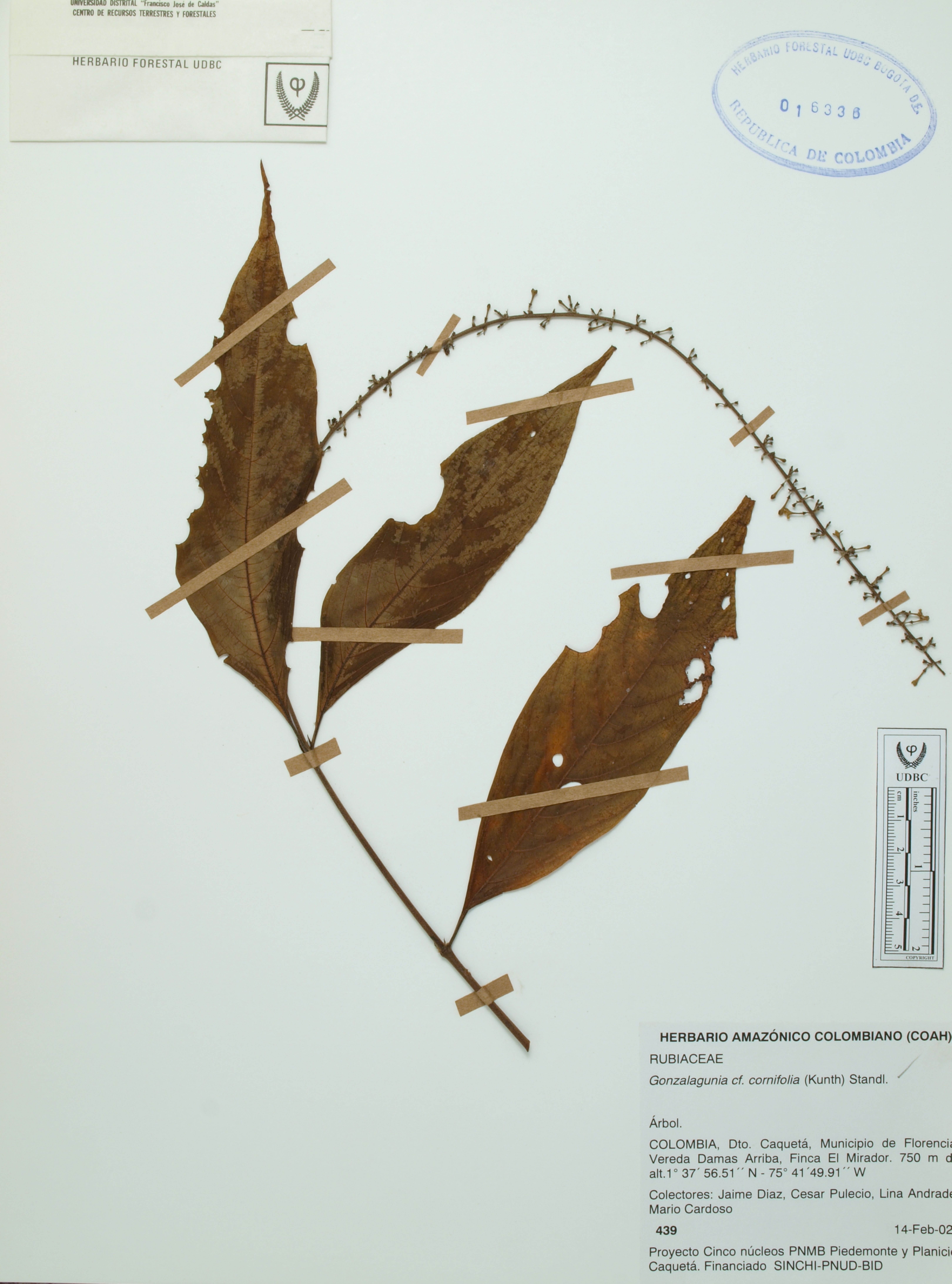| dc.description | Fotografía del ejemplar Díaz, J. 439, determinado como Gonzalagunia cornifolia | |