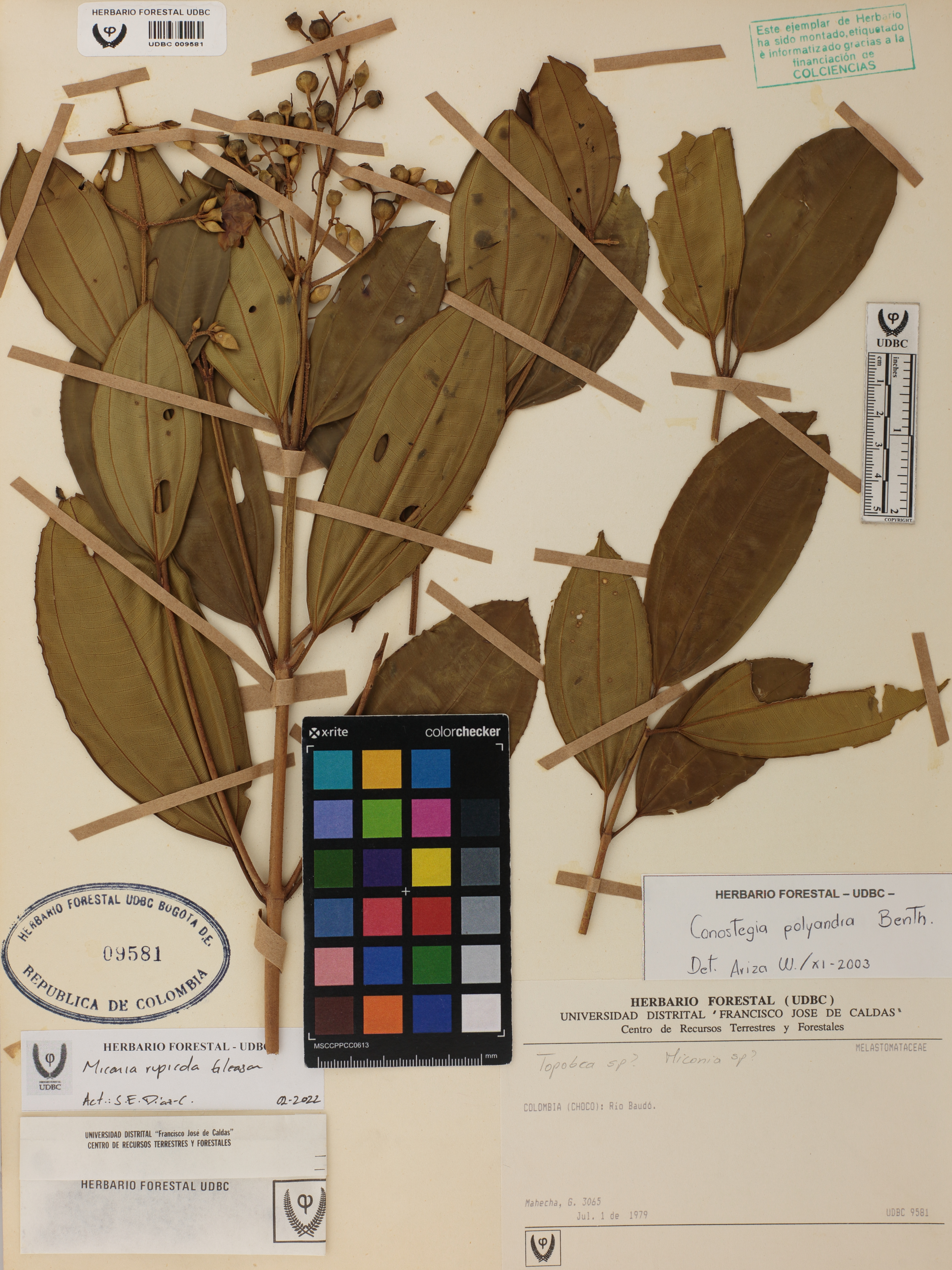 Fotografía del ejemplar Mahecha, G. 3065, determinado como Miconia rupicola en el año 2003