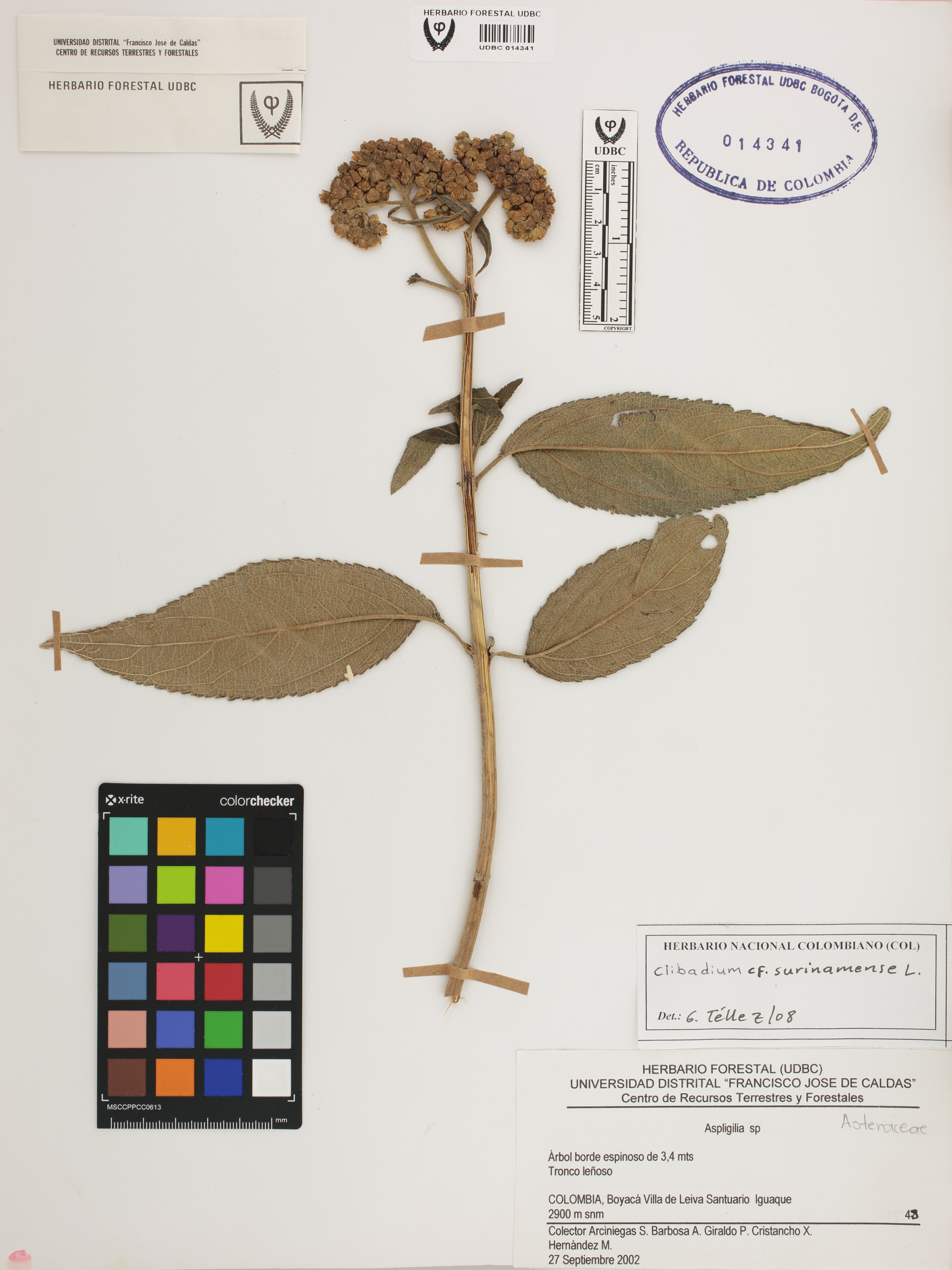 | dc.description | Fotografía del ejemplar Arciniegas, S. 45, determinado como Clibadium surinamense en el año 2008 | |