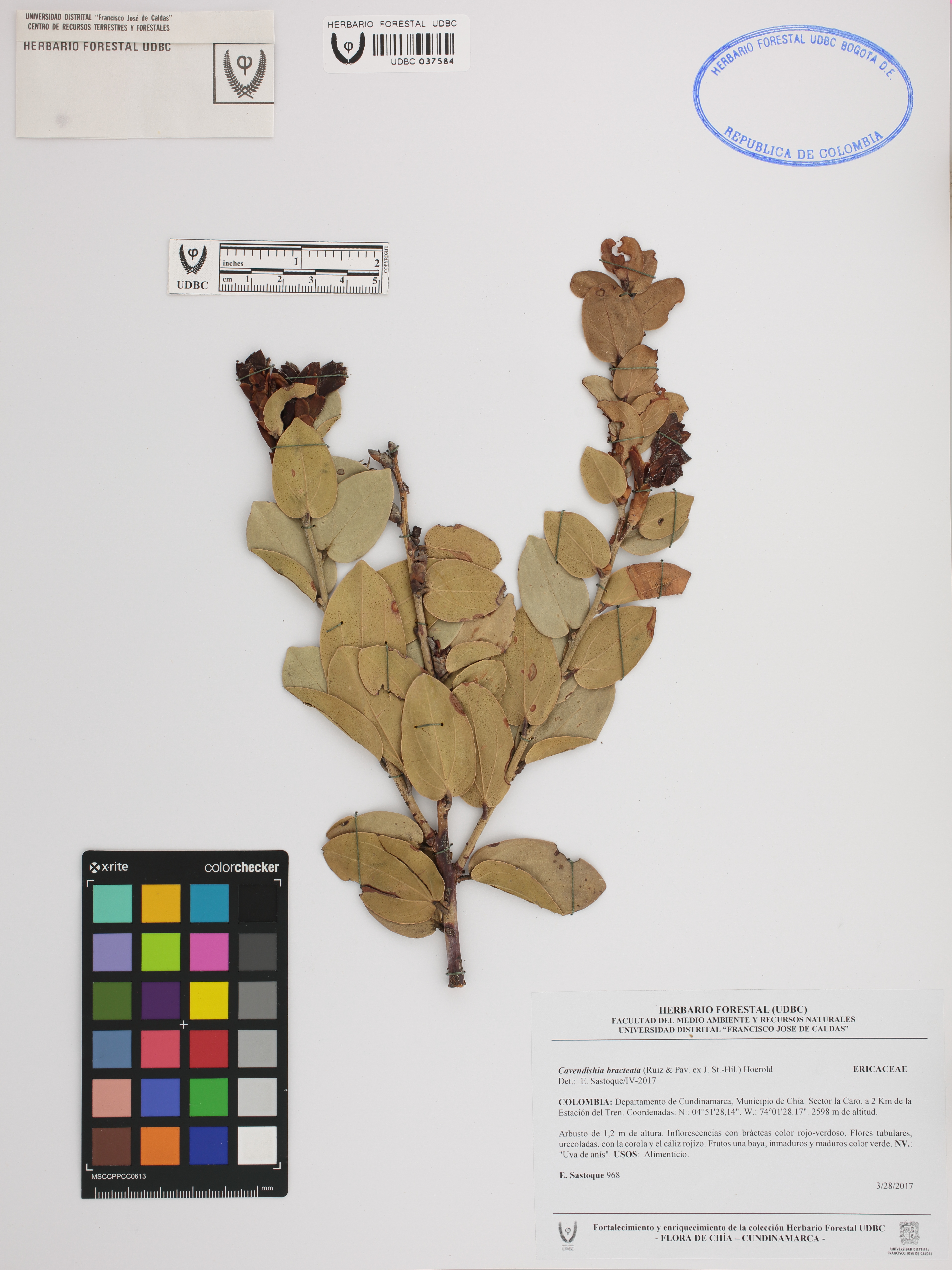 | dc.description | Fotografía del ejemplar Sastoque, E. 968, determinado como Cavendishia bracteata en el año 2017 | |