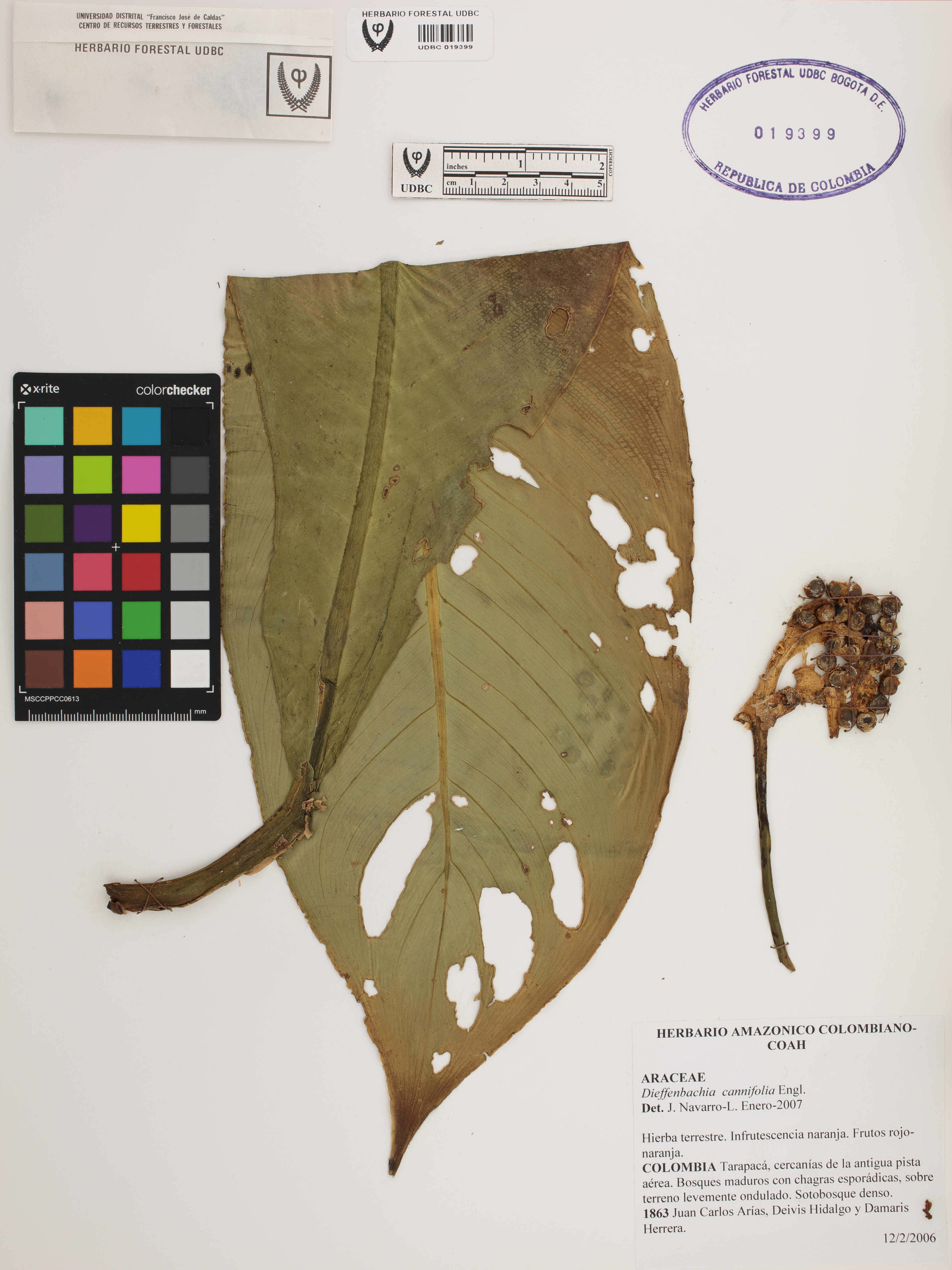 | dc.description | Fotografía del ejemplar Arias, J. 1863, determinado como Dieffenbachia cannifolia en el año 2007 | |