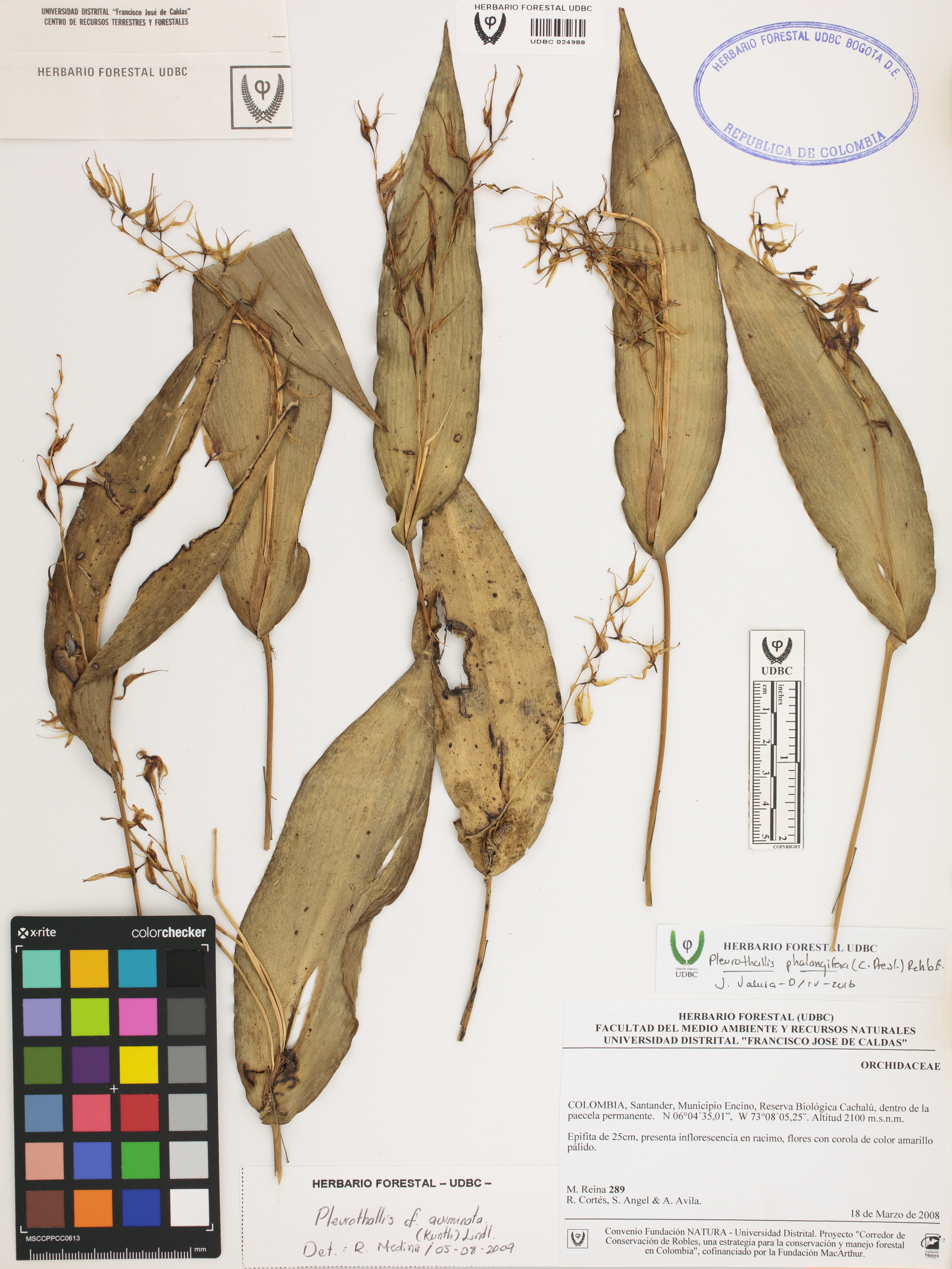 Fotografía del ejemplar Reina, M. 289, determinado como Pleurothallis phalangifera en el año 2016