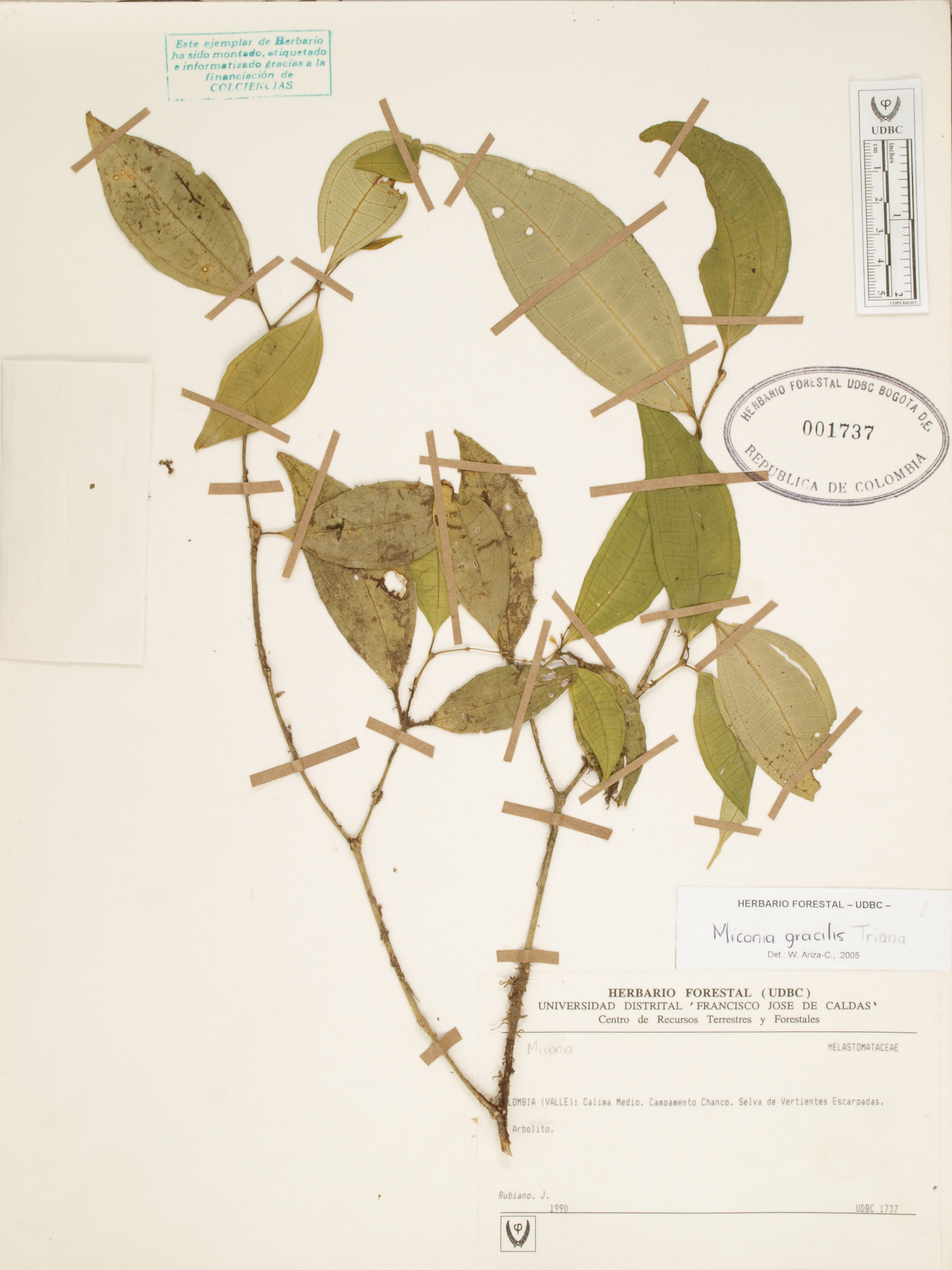 | dc.description | Fotografía del ejemplar Rubiano, J., determinado como Miconia gracilis en el año 2005 | |