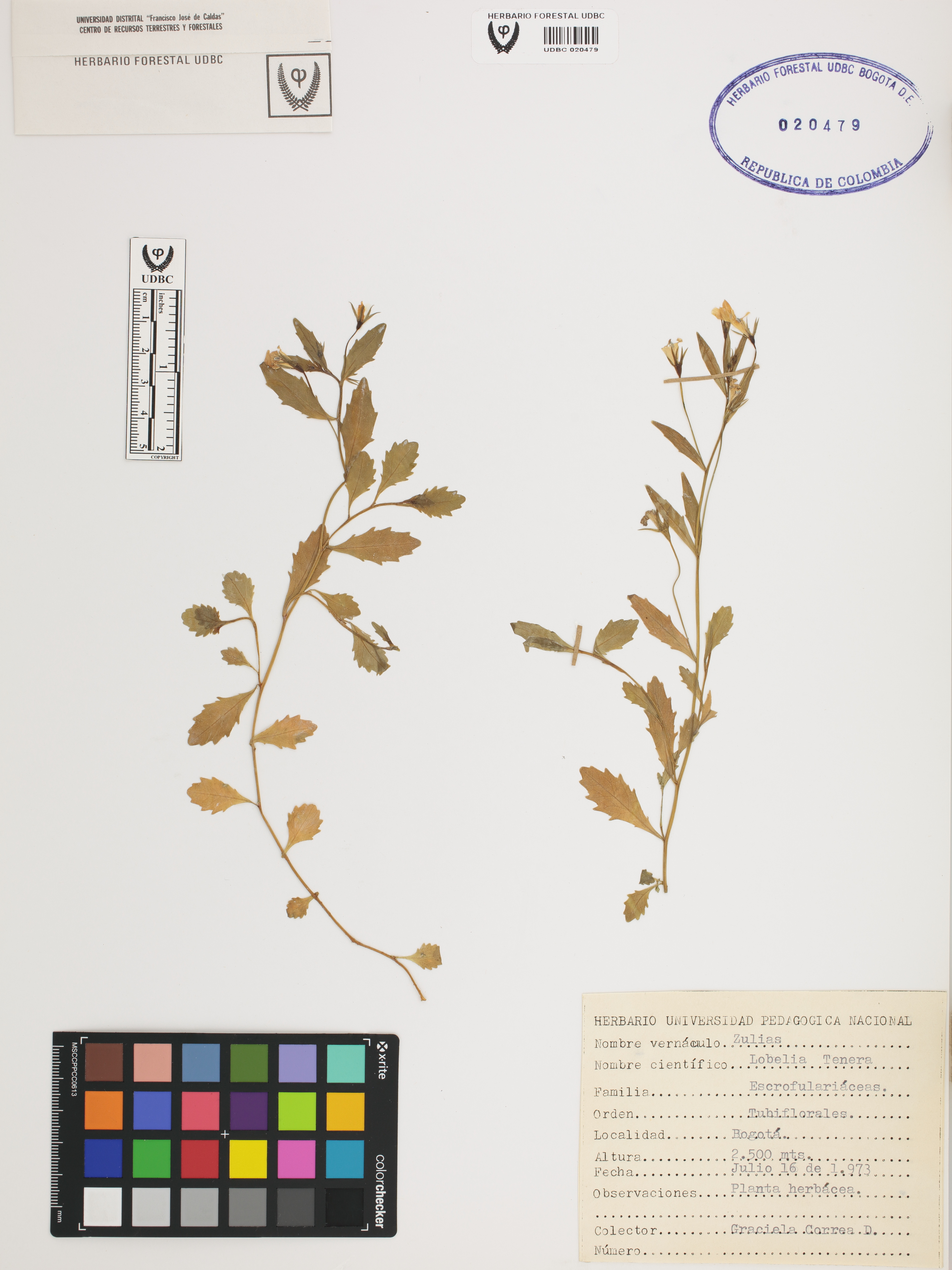 Fotografía del ejemplar Correa, G., determinado como Lobelia tenera