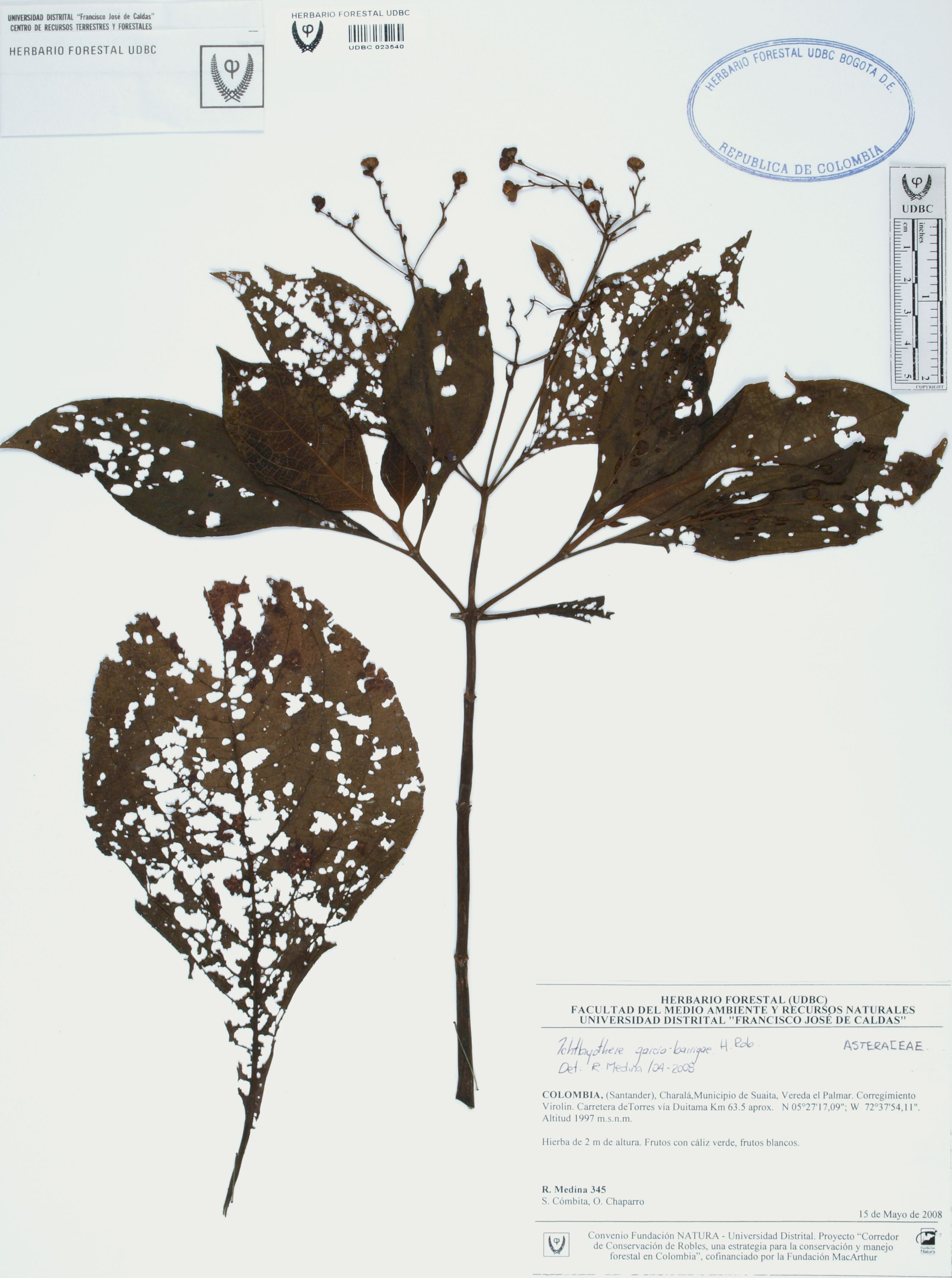 | dc.description | Fotografía del ejemplar Medina, R. 345, determinado como Ichthyothere garcia-barrigae en el año 2008 | |